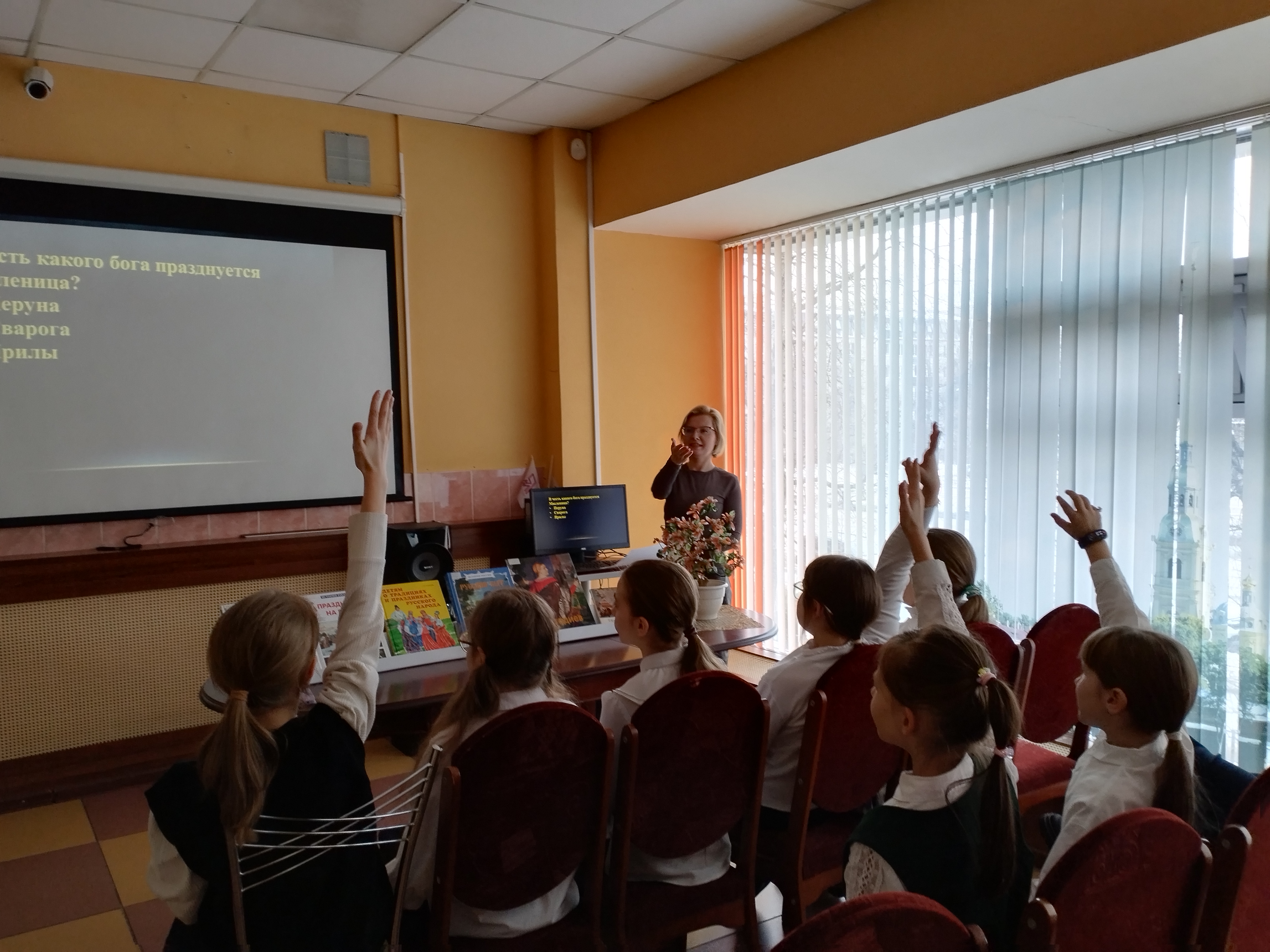 Интерактивная программа состояла из нескольких частей. В первой - состоялось путешествие в историю Масленицы. Учащиеся прослушали рассказ о празднике и блиц-обзор этнографической литературы. Во второй части программы дети посмотрели фильм «Масленица пришла», благодаря которому ознакомились со значением каждого дня масленичной недели. В третьей – ответили на вопросы занимательной и яркой игры-викторины. И в завершении прослушали «Сказку о весёлом художнике Борисе Кустодиеве», которого считают «певцом русского быта».