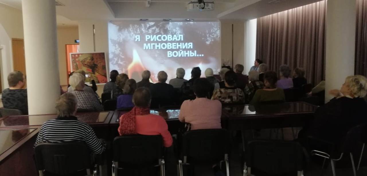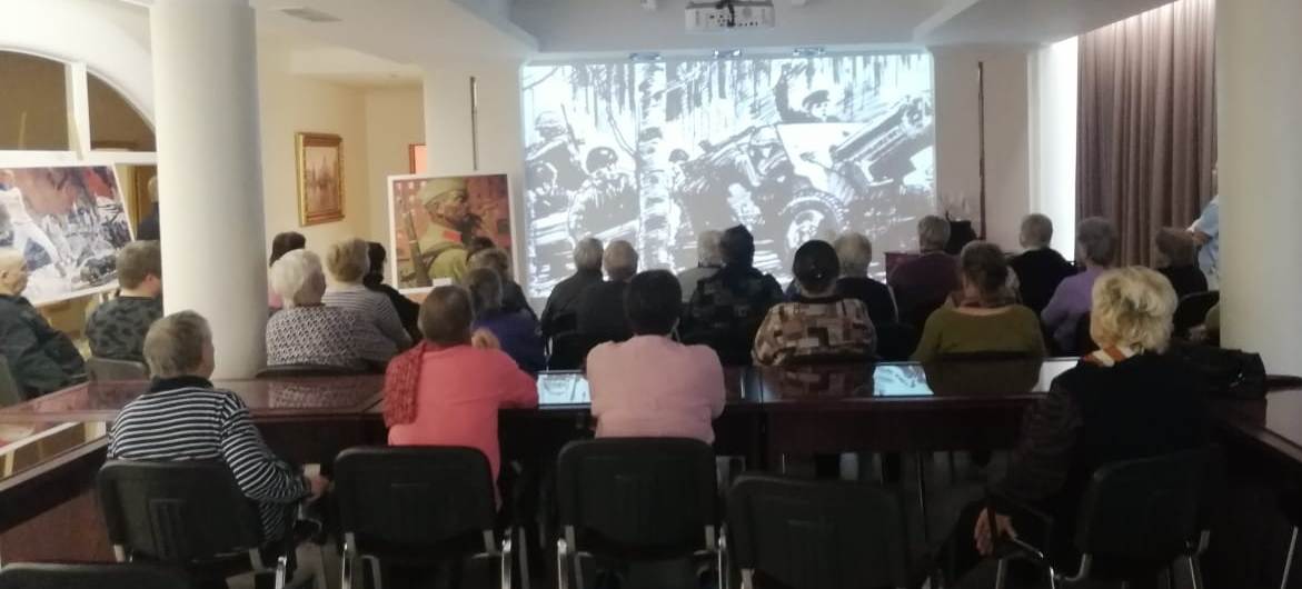 Наш разговор о героях, приближавших Победу, продолжил просмотр фильма «Я рисовал мгновения войны», проект «ИЗОмарафон «Художник и война». Взрослые посетители  смогли познакомится с героем, защищавшим Киришскую землю в годы войны - Николаем Николаевичем Дуловым.