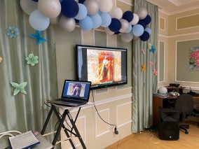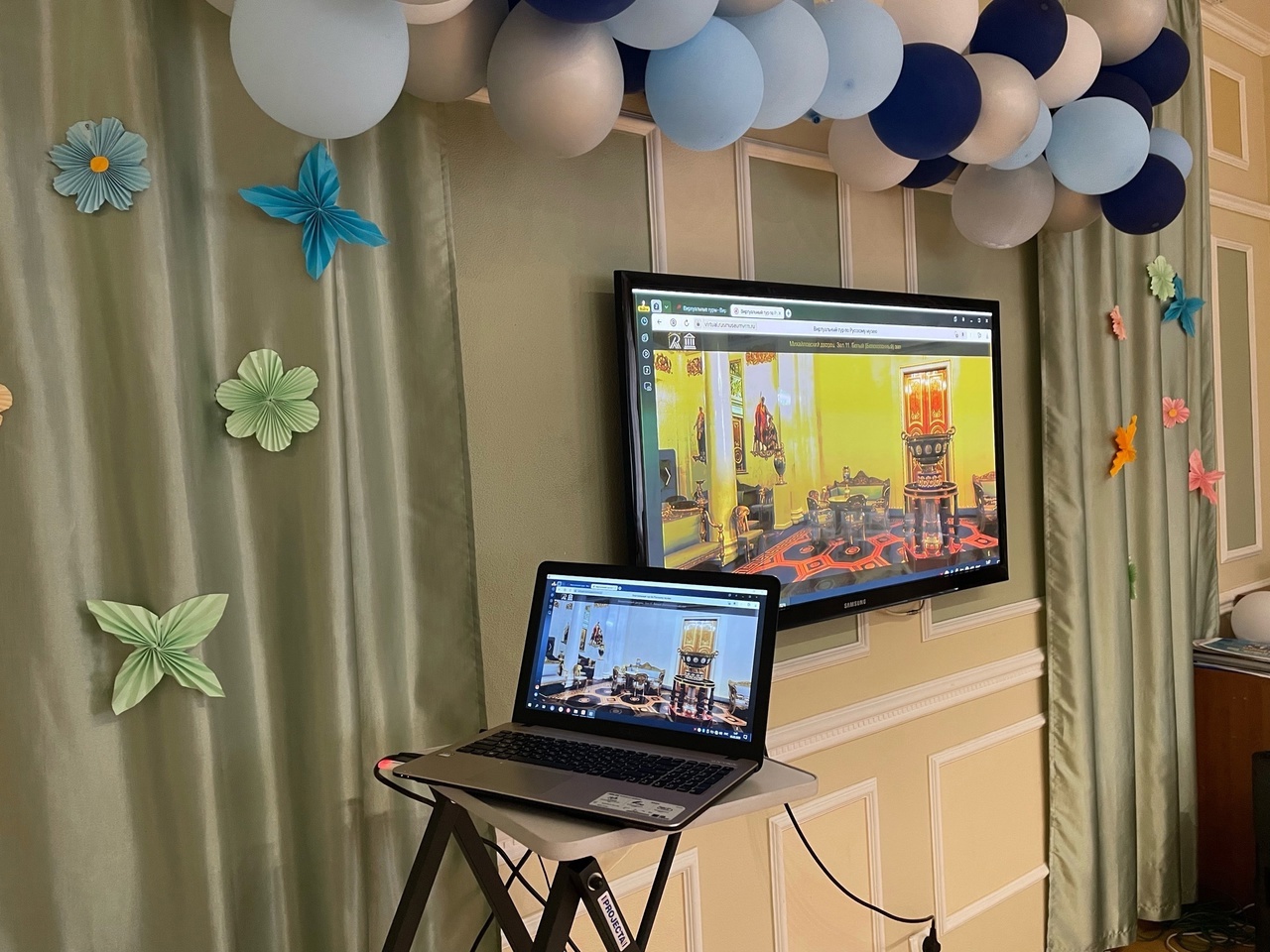 Участники встречи совершили виртуальное путешествие по Михайловскому дворцу: парадная лестница, великолепный Белый (Белоколонный ) зал.
