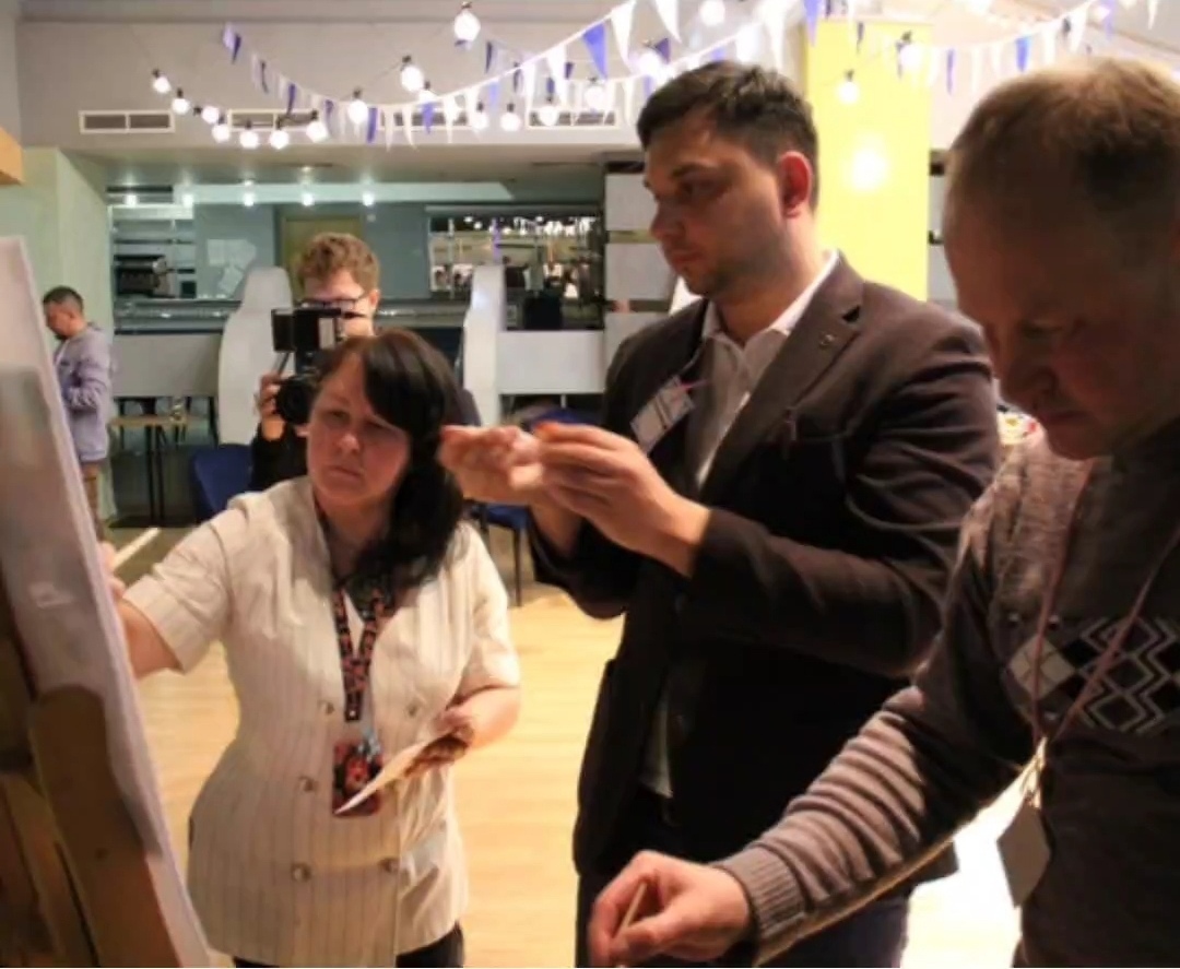 Вечер сопровождался весëлыми конкурсами, играми и знакомыми песнями о реках и морях. Сюрпризом для гостей оказалась творческая часть встречи. На мастер-классе каждый смог проверить свои художественные способности и прикоснуться к искусству через кисти и краски. Итогом стала яркая серия живописных работ, которая несомненно украсит помещение цеха. Никто не остался равнодушным и безучастным.