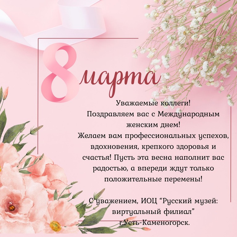 Желаем вам профессиональных успехов, вдохновения, крепкого здоровья и счастья! Пусть эта весна наполнит вас радостью, а впереди ждут только положительные перемены! Всем мира, добра и благополучия!