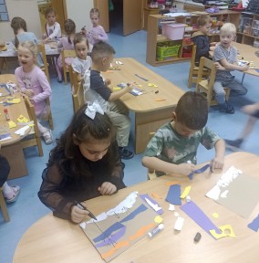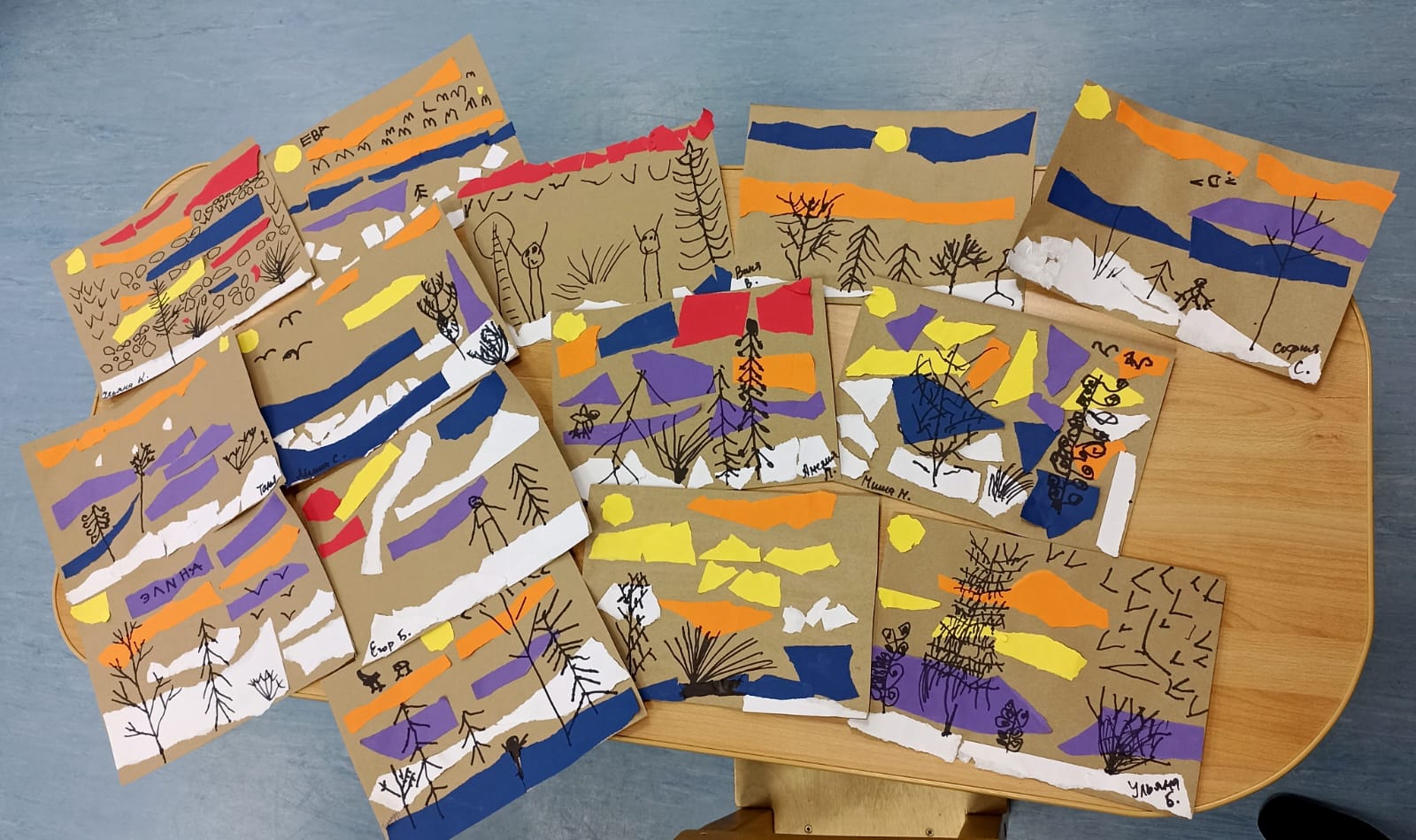 Занятие "Обрывная аппликация". Яркие краски Николая Константиновича Рериха и Бориса Михайловича Кустодиева ребята старшего дошкольного возраста смогли реализовать в своих работах в технике обрывной аппликации. Цель занятия по обрывной аппликации — познакомить детей с новой техникой работы с бумагой. Задачи: познакомить с техникой обрывной аппликации, расширить знания о различных способах аппликаций, развивать мелкую моторику, интерес к творчеству, воображение, внимательность, логическое мышление; воспитывать аккуратность, усидчивость.