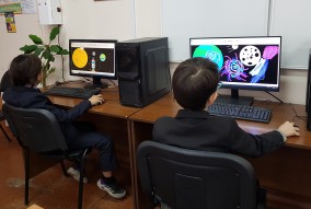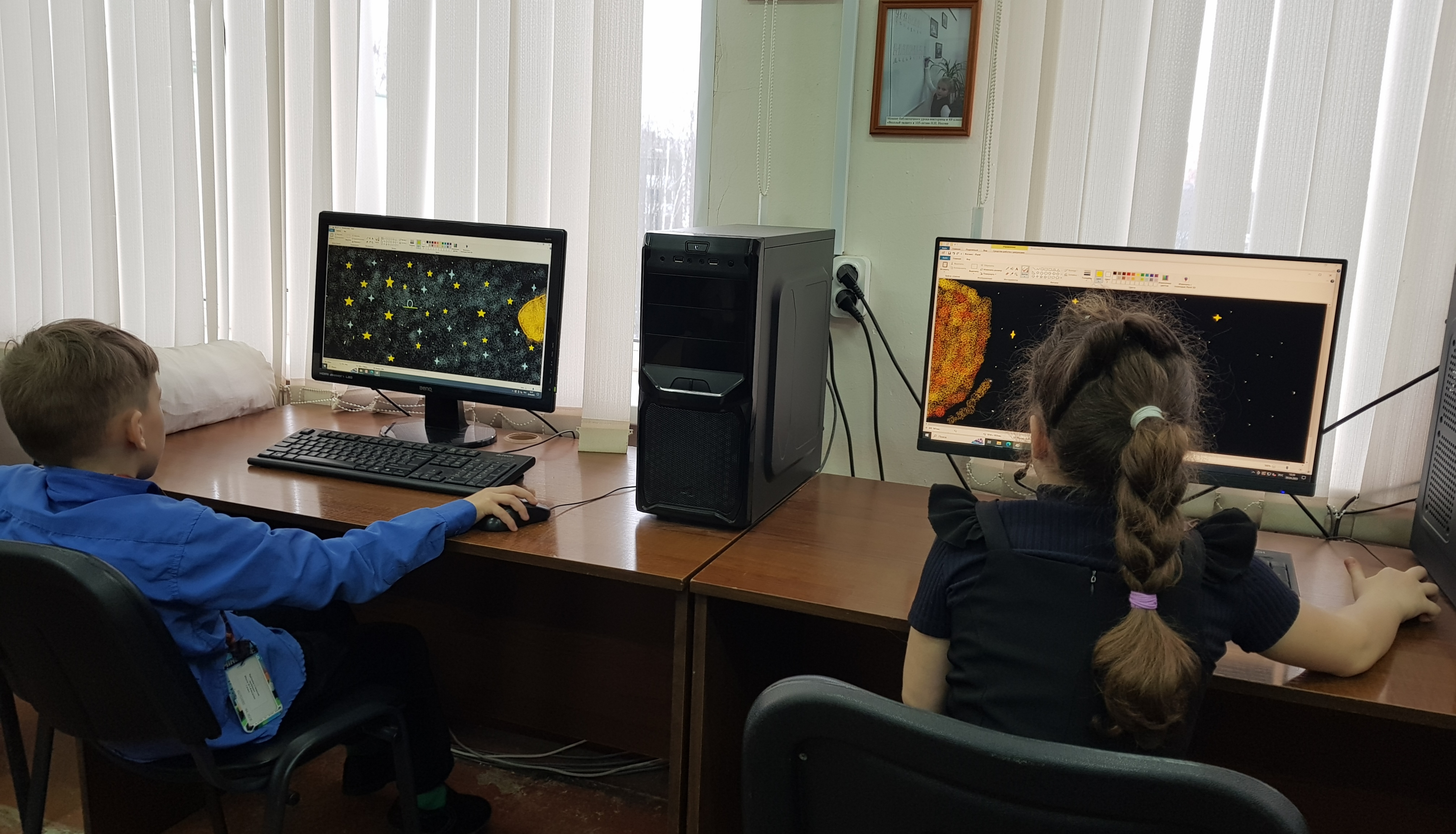 Во время занятий ребята рассмотрели произведения из раздела «Космос», опубликованные на виртуальной выставке «100 лет СССР». В заключительной части встречи, создали праздничные открытки в графическом редакторе.