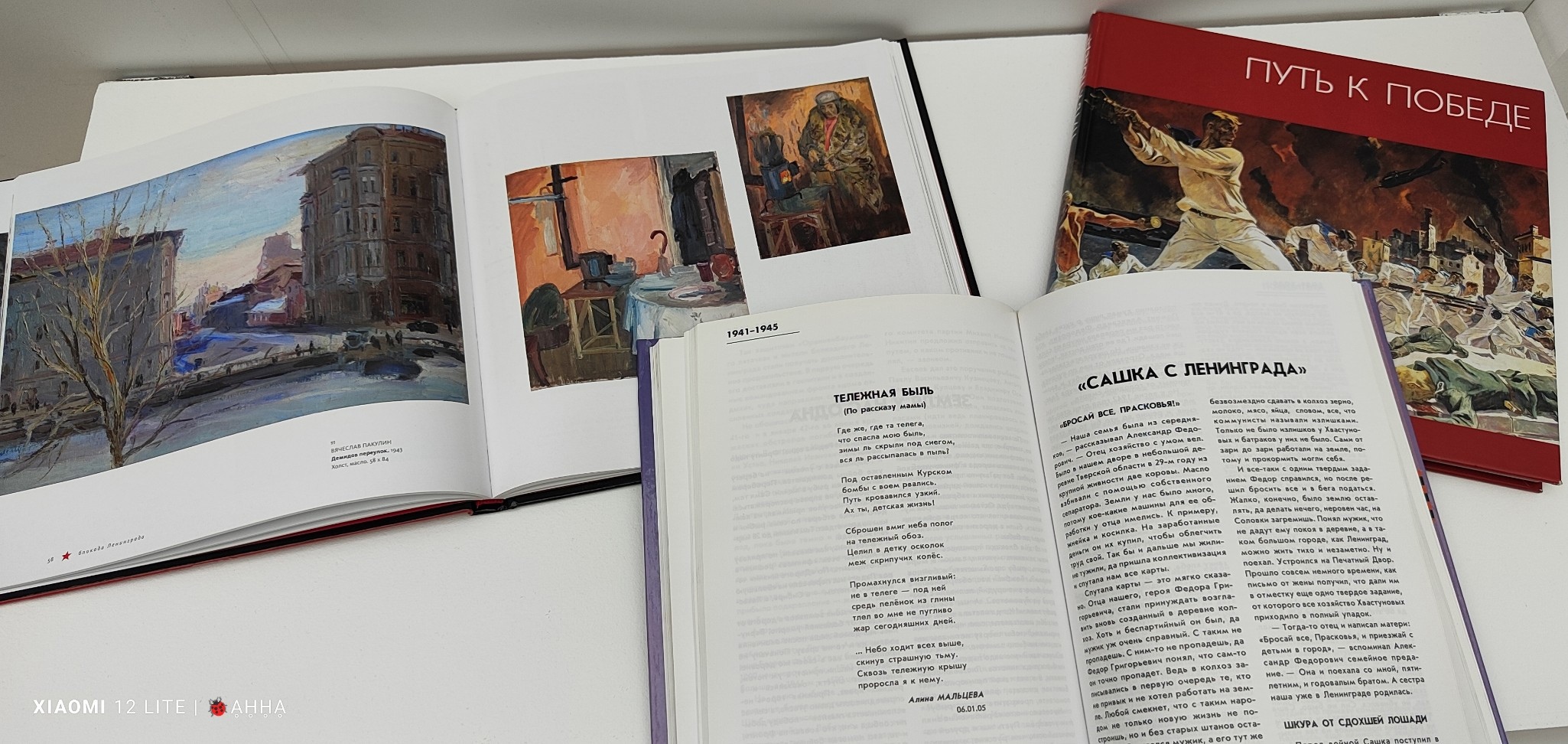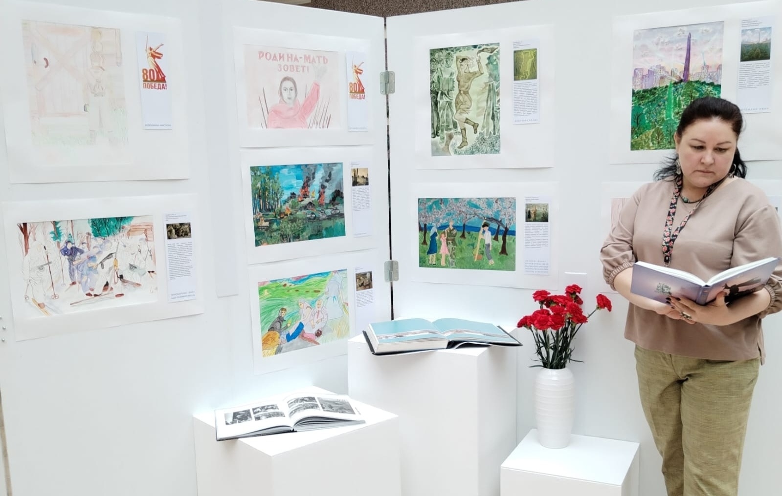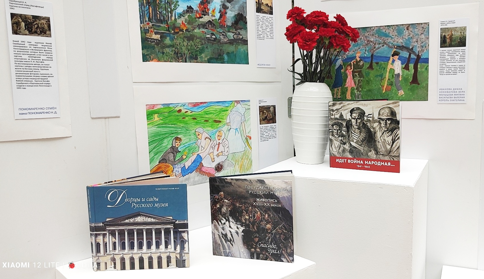На открытии выставки рисунков «Победа - нам жить и помнить», посвящённой великому юбилею — 80-летию Великой Победы, были представлены книги и каталоги Государственного Русского музея.
