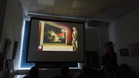 После чего, благодаря мультимедийным ресурсам Русского музея, дети выполнили ряд заданий из игровой программы "Светлячки": осветили картину "Последний день Помпеи", "Радуга", а также озвучили полотна живописцев.