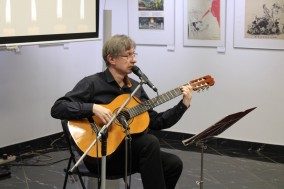 Гости мероприятия прослушали увлекательную экскурсию по выставке «Великий подвиг советского народа» и песни времен Великой Отечественной войны в исполнении преподавателя ДШИ «Лира» Павла Геннадьевича Васильева.