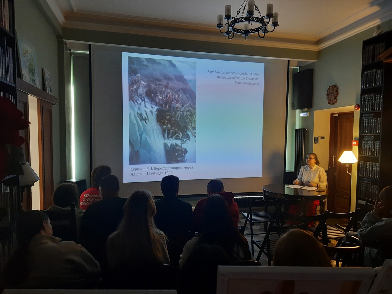 В преддверии Дня Победы в виртуальном филиале в городе Выборге студентов медицинского колледжа знакомили с героями российской истории. Языком живописи раскрыли подвиг солдат и офицеров в разные годы защищавших Отечество. Посетителям напомнили о былинных богатырях и героях Куликовской битвы, о подвигах "чудо-богатырей" Суворова и Отечественной войны 1812 года, о битвах Первой мировой и Великой Отечественной войн.