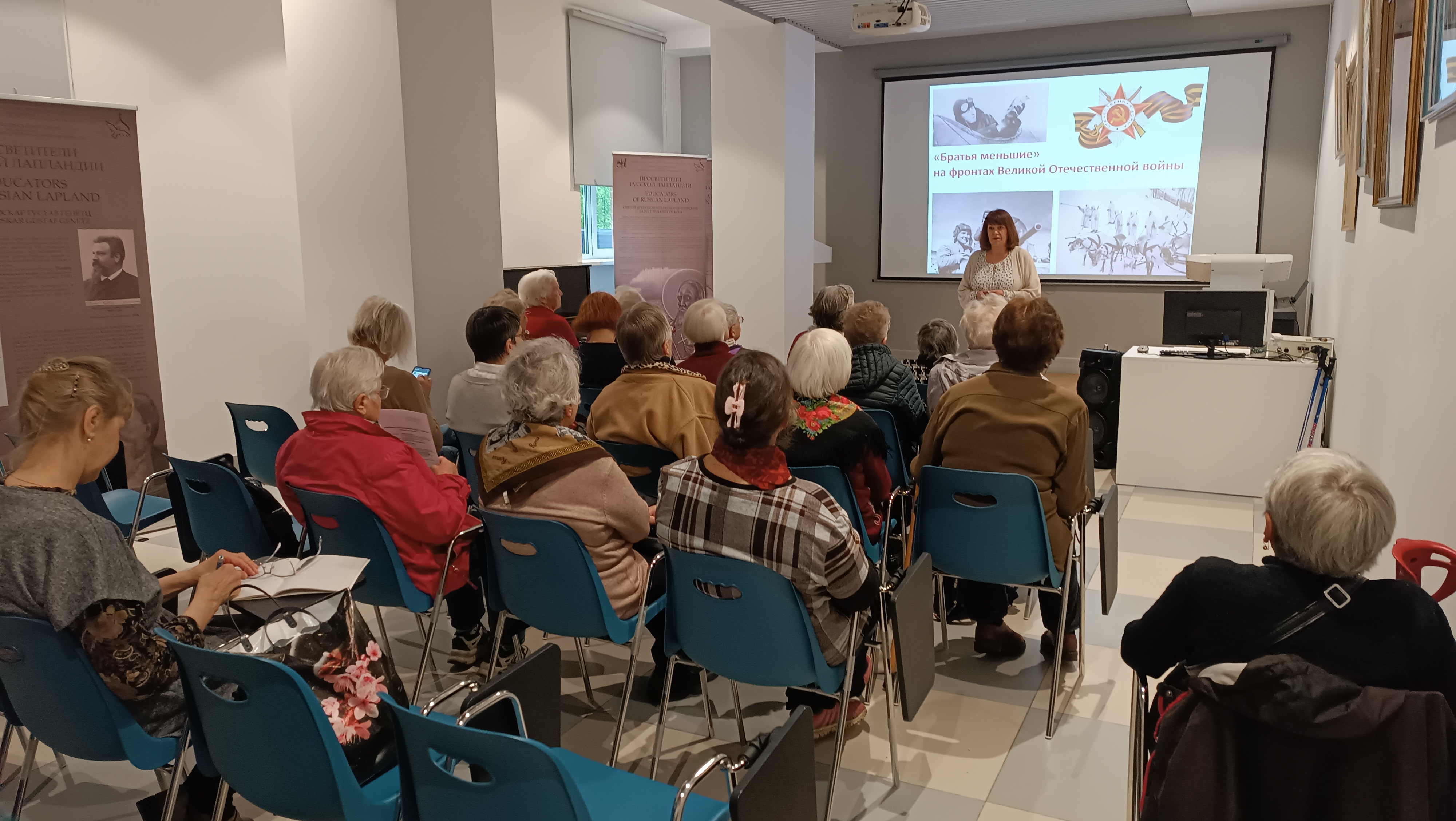 Пережить самые драматичные моменты истории Отечества и ковать Великую Победу помогали и братья наши меньшие. Они делали то, чему их научили люди, спасая тысячи человеческих жизней. Нередко при этом сами погибали. В знак благодарности животным на лекции были представлены интересные факты о том, как это было, отраженные в произведениях советских мастеров изобразительного искусства.