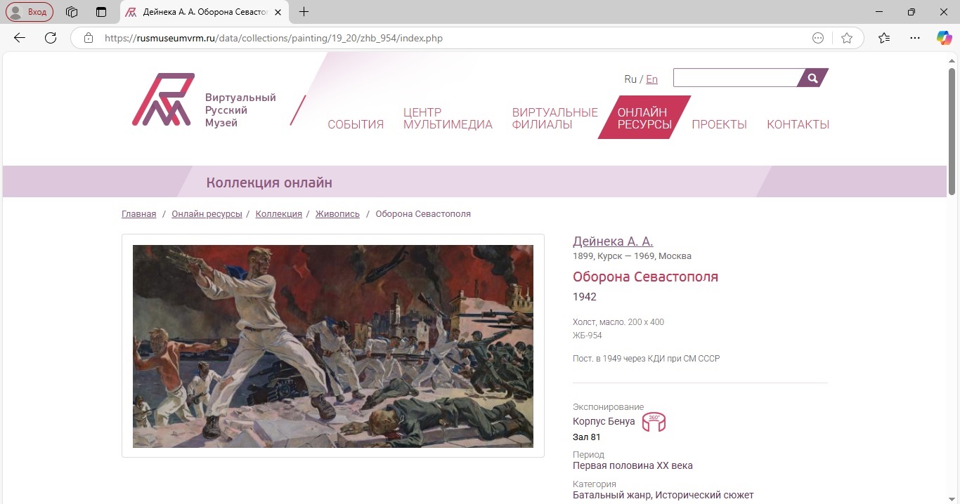 К 80-летию Победы в «Русском музее: виртуальном филиале» были организованы музейные беседы, основанные на знакомстве с экспонатами Русского музея, позволяющие глубже понять трагические и героические события тех лет. Школьники города Вольска смогли прикоснуться к истории, посмотрев фильм «Русский музей. Годы войны» из авторской программы В.А. Гусева, который посвящен деятельности музея в военное время. В ходе беседы ребята познакомились с историей создания знаменитой картины А.А. Дейнеки «Оборона Севастополя», узнали о жизненном пути и творчестве выдающегося мастера советского искусства, что позволило им проникнуться духом эпохи и оценить вклад художников в сохранение исторической памяти.