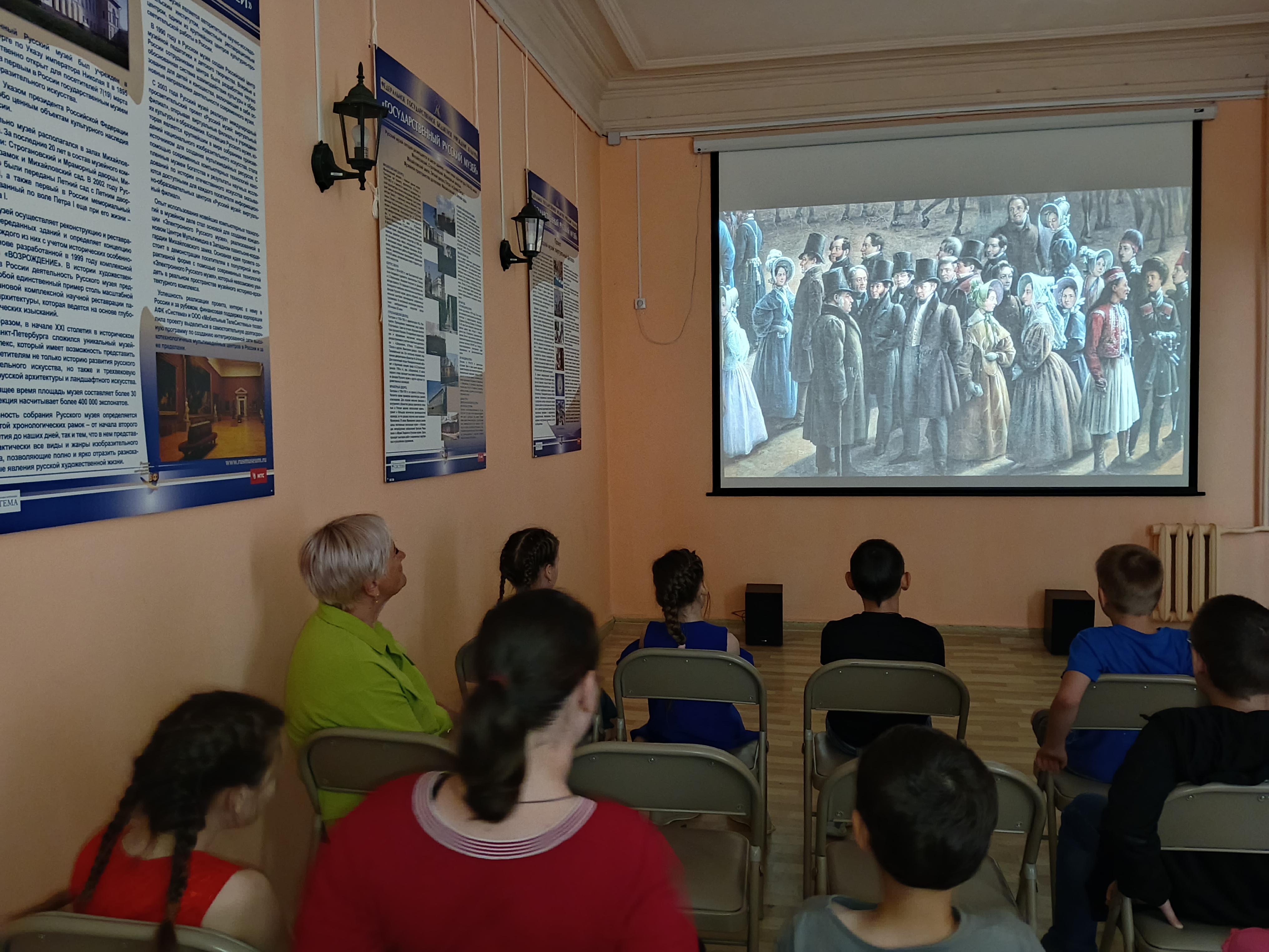 6 июня 2025 года юные посетители виртуального филиала из государственного бюджетного учреждения Саратовской области «Социально-реабилитационный центр для несовершеннолетних «Волжанка» вспомнили биографию А.С. Пушкина, его творчество. Совершили виртуальный тур по нескольким залам выставки «Он победил и время и пространство…». Посмотрели фильм из медиатеки цикла «Коллекции Русского музея» «Виртуальное путешествие в картину Г. Чернецова "Парад на Царицыном лугу". На картине воспитанники увидели помимо представителей разного рода войск, императора Николая I и его свиты, более 200 персонажей, в том числе самого А.С.Пушкина.