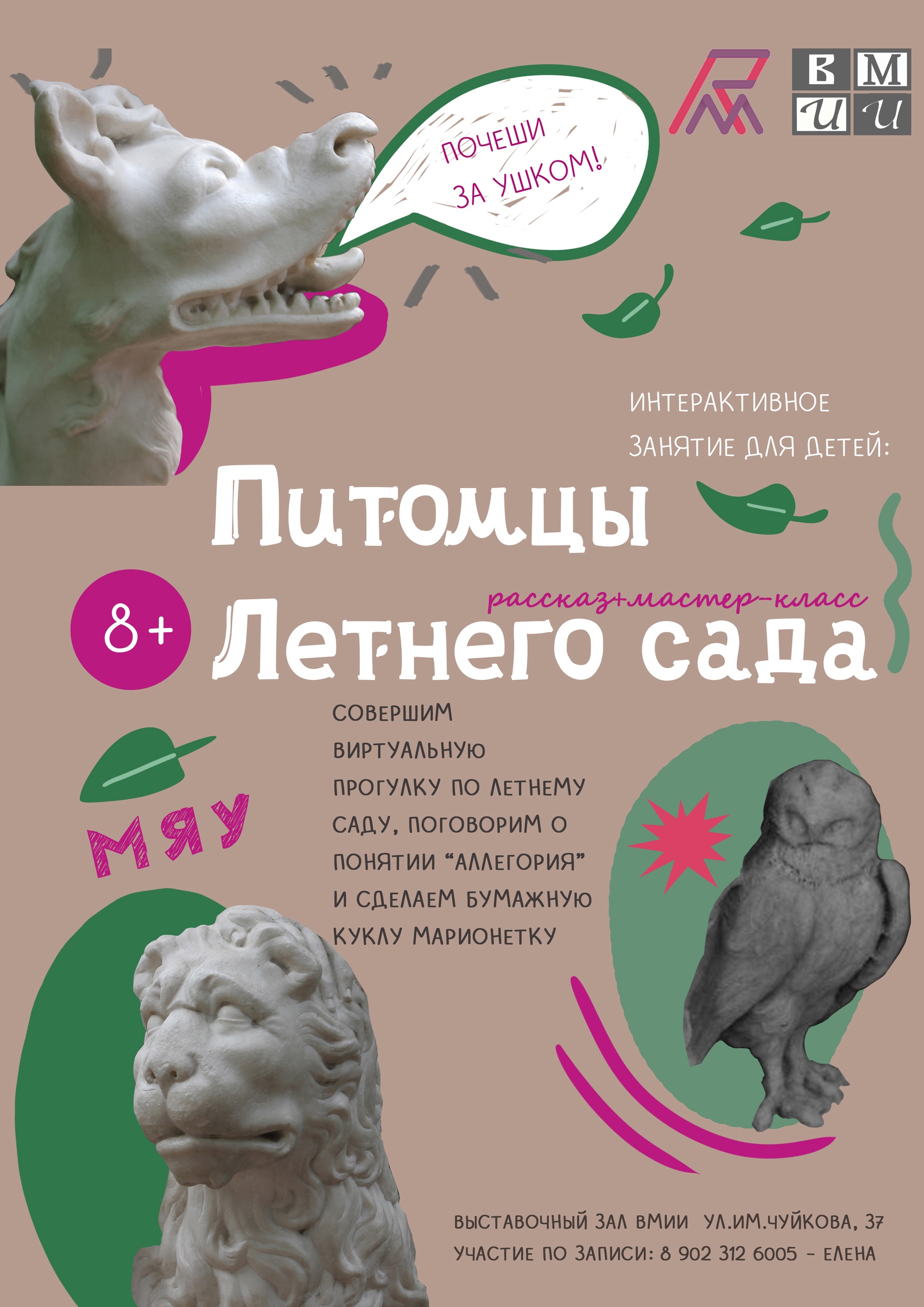 На занятии совершим виртуальную прогулку по Летнему саду, полистаем книгу «Символы и эмблемата» и вспомним, что такое «аллегория». А на мастер-классе можно будет порисовать по мотивам рассмотренных образов и сделать своего питомца в виде куклы-марионетки! Будем использовать бумагу разной фактуры, акварель, маркеры, а детали марионетки можно будет скрепить специальными заклёпками – брадсами.