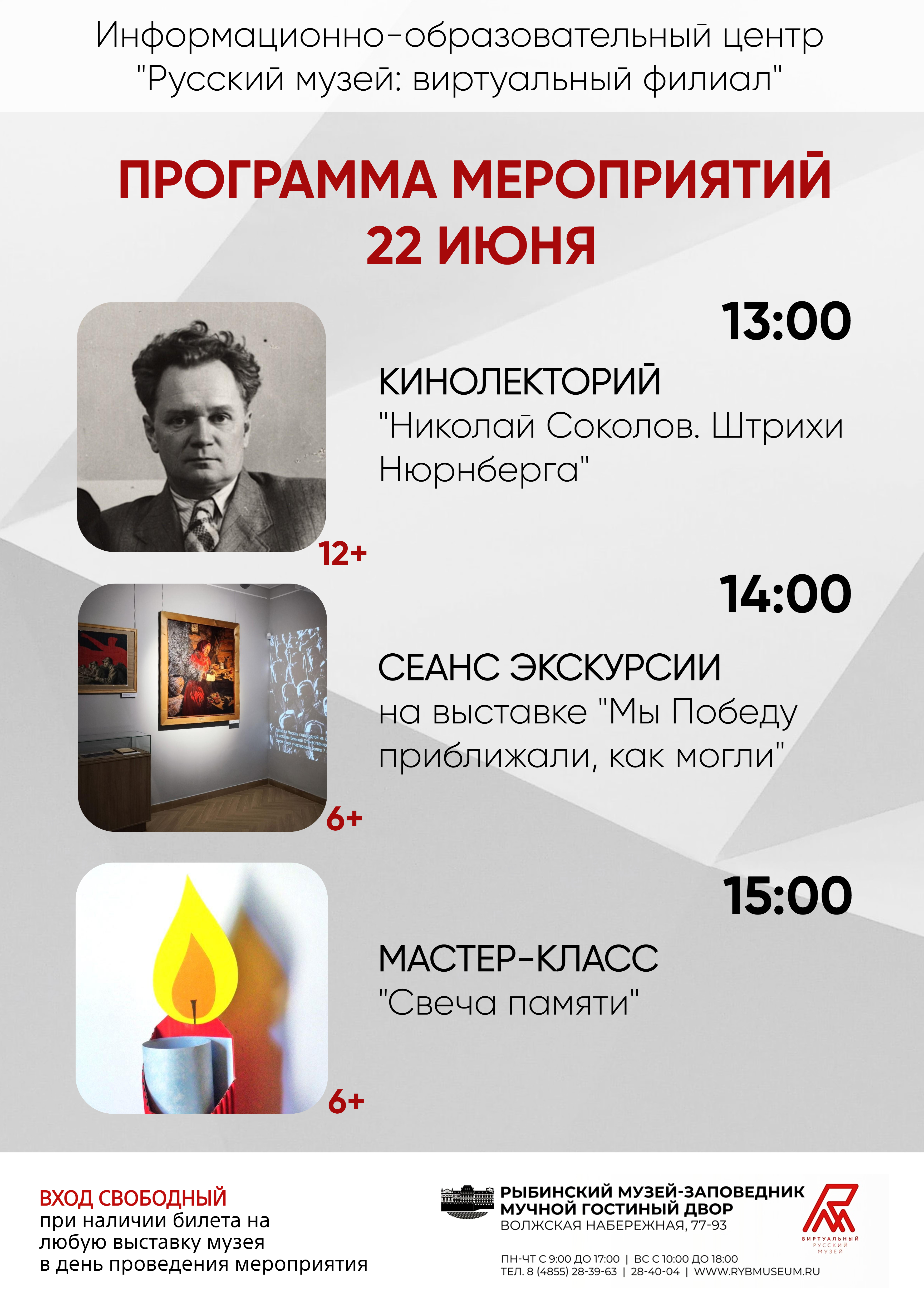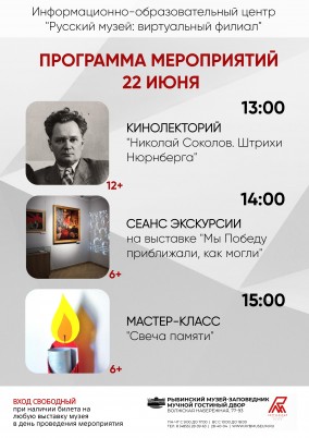 В День памяти и скорби в Информационно-образовательном центре «Русский музей: виртуальный филиал» Рыбинского музея-заповедника пройдёт несколько мероприятий:
