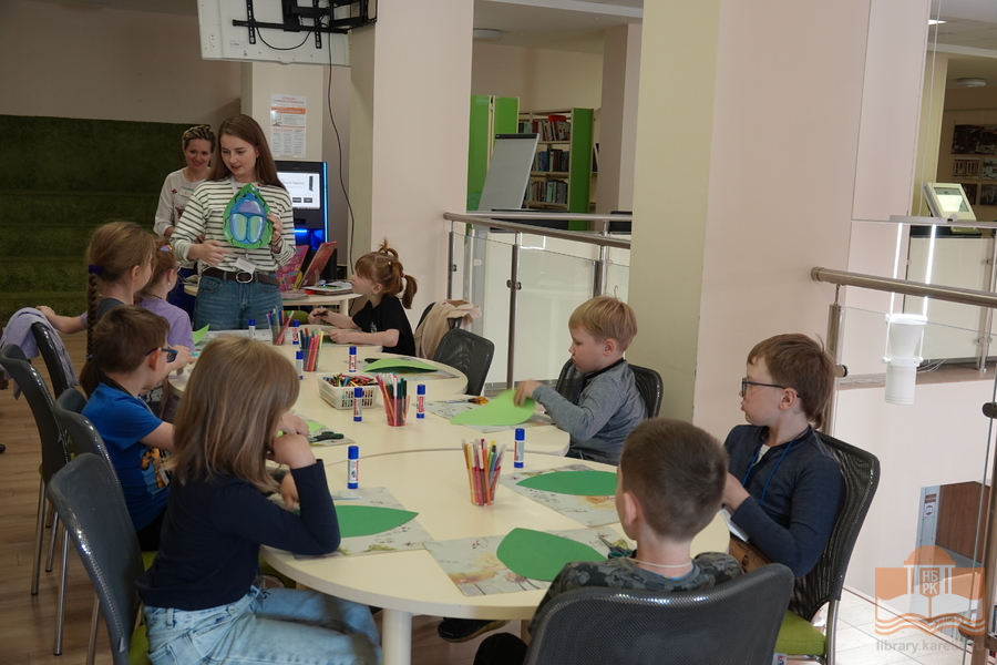 Вдохновившись увиденными шедеврами, юные читатели библиотеки сделали своими руками летнюю поделку: на яркие зелёные листочки приземлились бабочки и божьи коровки. После вкусного библиоланча ребят ждала просветительская прогулка с библиотекарем по одной из самых старых улиц Петрозаводска.