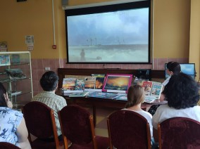 Затем был показан видеофильм об Айвазовском из цикла "Сказки о русских художниках" (В страну музеев вместе с Фафалей), в котором происходит сказочное виртуальное путешествие по картинам художника.