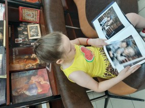 Во время занятия взрослые рассказали детям, почему подкова является традиционным талисманом счастья, благополучия, удачи и защиты от зла. Библиотекарь Галина Черемисова познакомила присутствующих с книгами из коллекции Государственного Русского музея: «Портрет семьи» и «Запечатлённое детство». В одном издании представлены семейные портреты разных художников, написанные в разное время. В другом - можно увидеть снимки современного фотографа Анны Азбель. Оба издания интересно изучать всей семьёй. Они об истории портрета, семейных традициях и обычаях, об улыбках на лице счастливого ребёнка.