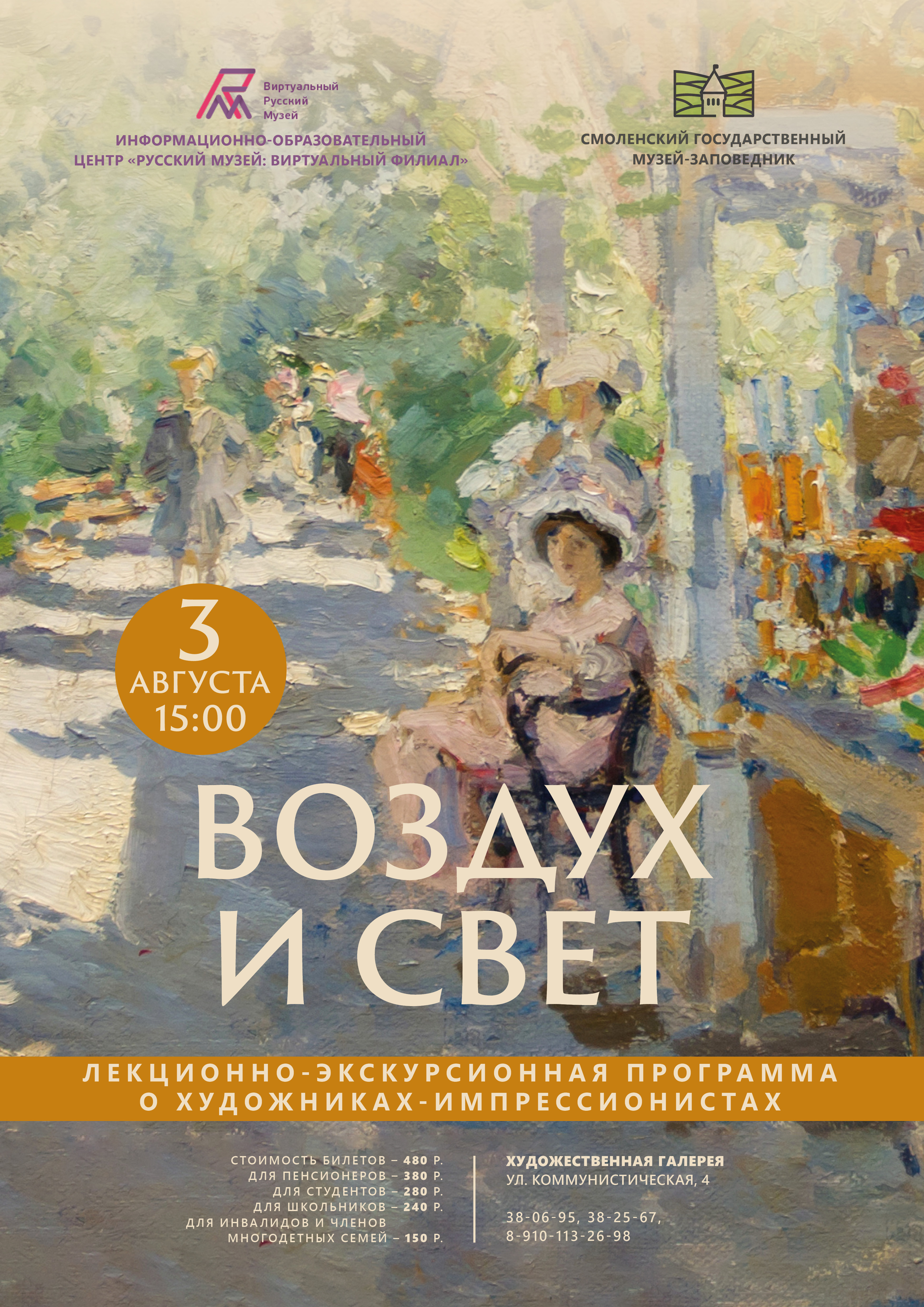 На мероприятии посетители узнали о знаменитых основоположниках импрессионизма, а также познакомились с произведениями его ярких зарубежных и русских представителей из собрания галереи: Луи Бозиля, Антуана Вийяра, Константина Коровина, Игоря Грабаря и других. На вводной лекционной части посетители также рассмотрели произведения знаменитых русских преобразователей искусства 19-20 столетия из коллекции Русского музея.
