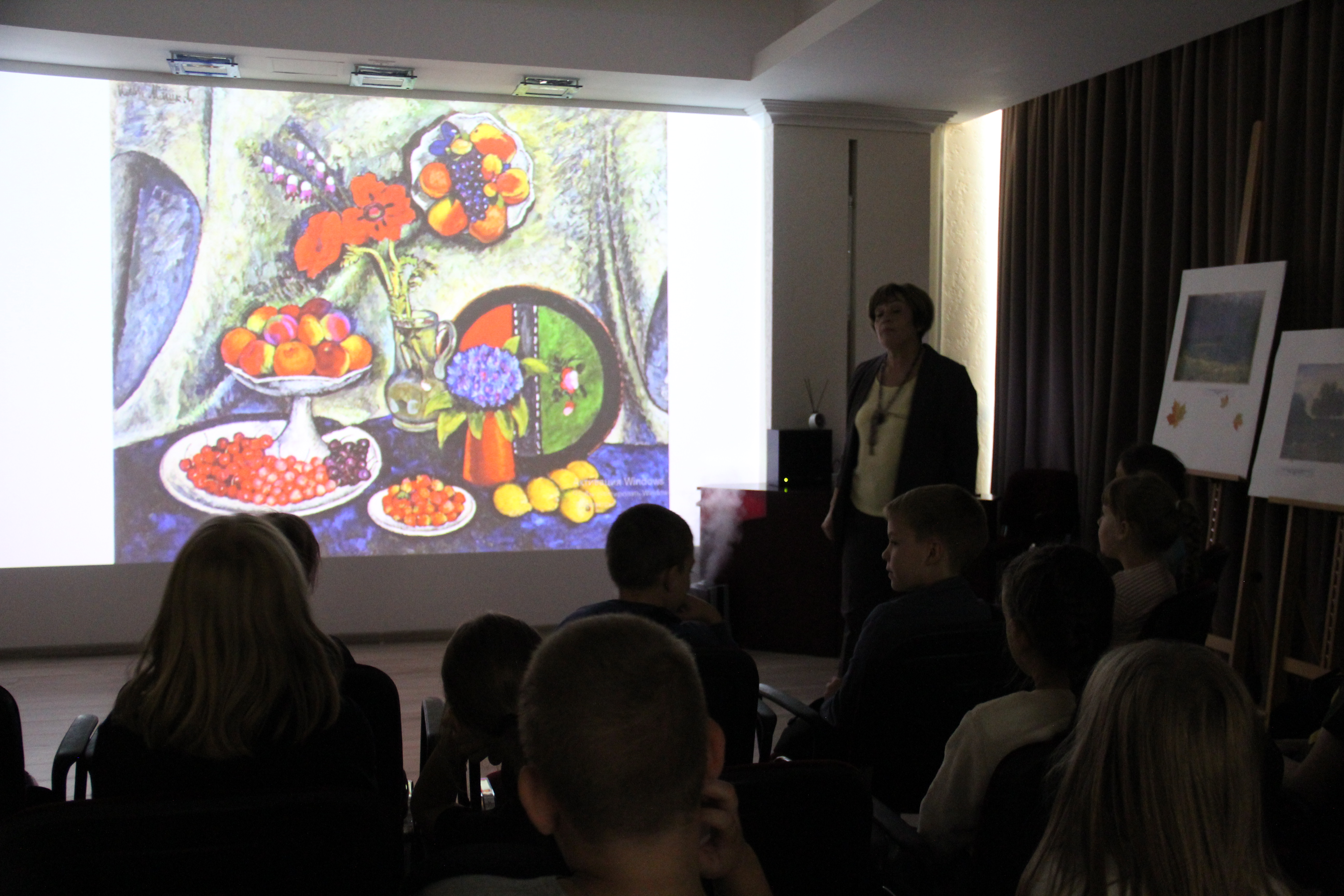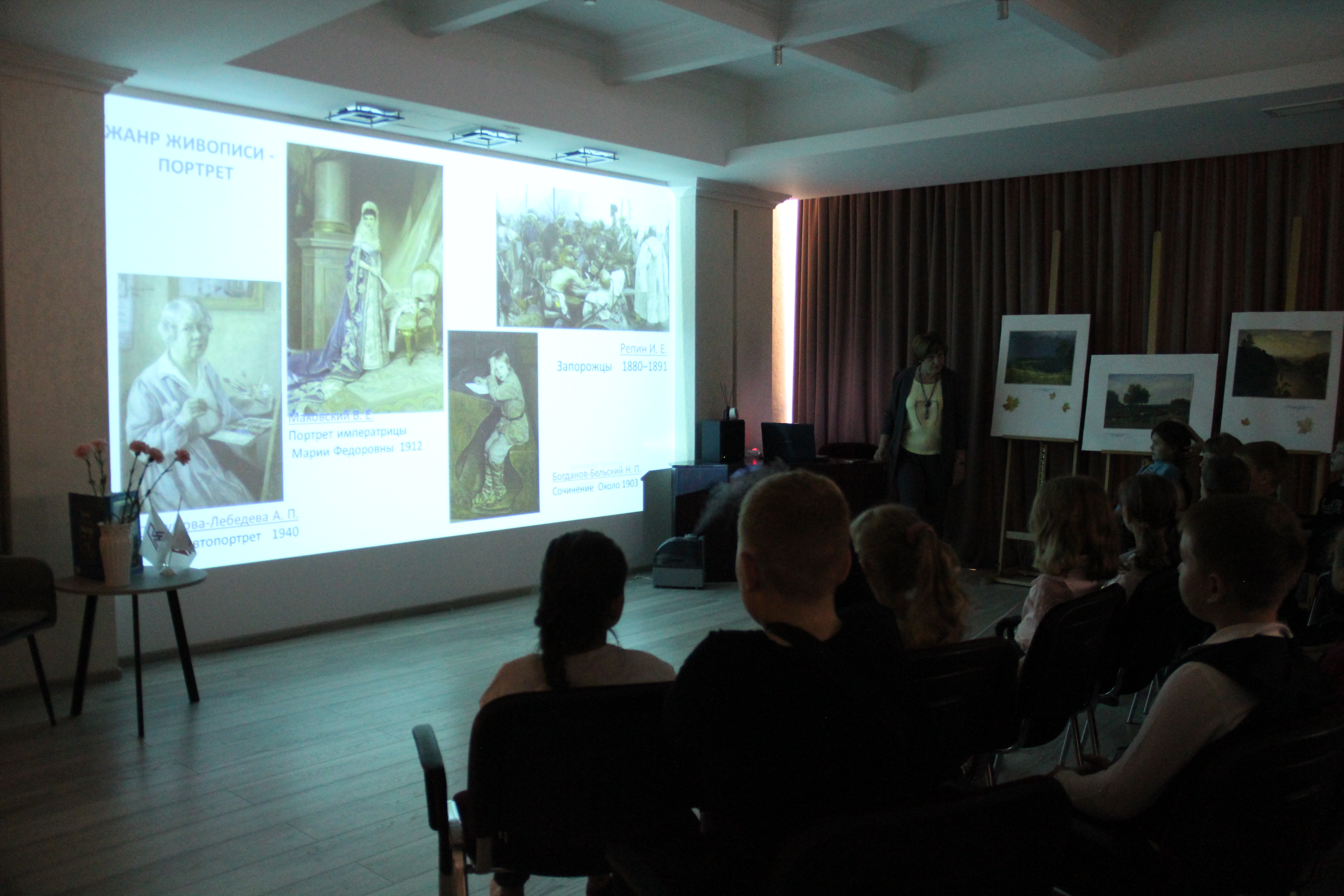 На экскурсии  на примерах знаменитых картин Русского музея, детям объяснили  название жанров. В беседе  с ребятами вопросы были направлены на более глубокое понимание событий, изображенных в картине. А сравнивая одну картину с другой, они отметили, не только  что художник изображает, но и как.
