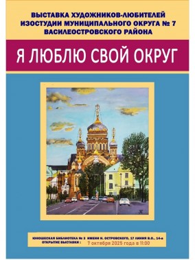 Выставка «Я люблю свой округ», на которой представлены работы талантливых художников-любителей изостудии «Радуга» Социального центра Муниципального округа №7 Василеостровского района.