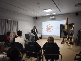 Реставратор масляной и темперной живописи музея на лекции-встрече рассказала о работе над картинами художника И.С. Далматова, особенностях реставрационных процессов и в целом труде реставратора.