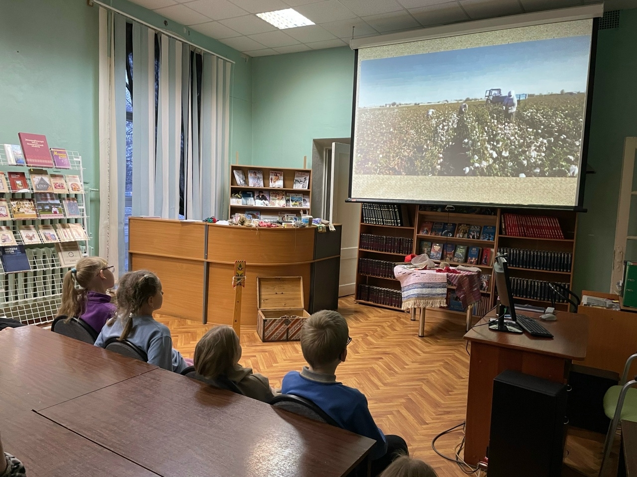 14 ноября в Пикалевскую центральную библиотеку на очередное занятие из цикла «Шаг в искусство» пришли мальчики и девочки из отделения социального обслуживания. Наша встреча называлась «Ткани неведомый, чудный узор». Много интересного узнали сегодня ребята. Вначале мы заглянули в прошлое, чтобы увидеть, как и какие ткани использовали в русской избе, во что одевались; посмотрели видеоролики о выращивании, обработке, прядении льна и хлопка, о производстве шелка.Побывали в реставрационной мастерской Русского музея, увидели, как работают с тканями художники-реставраторы. Поговорили о раскрашивании тканей и использовании набойки.
