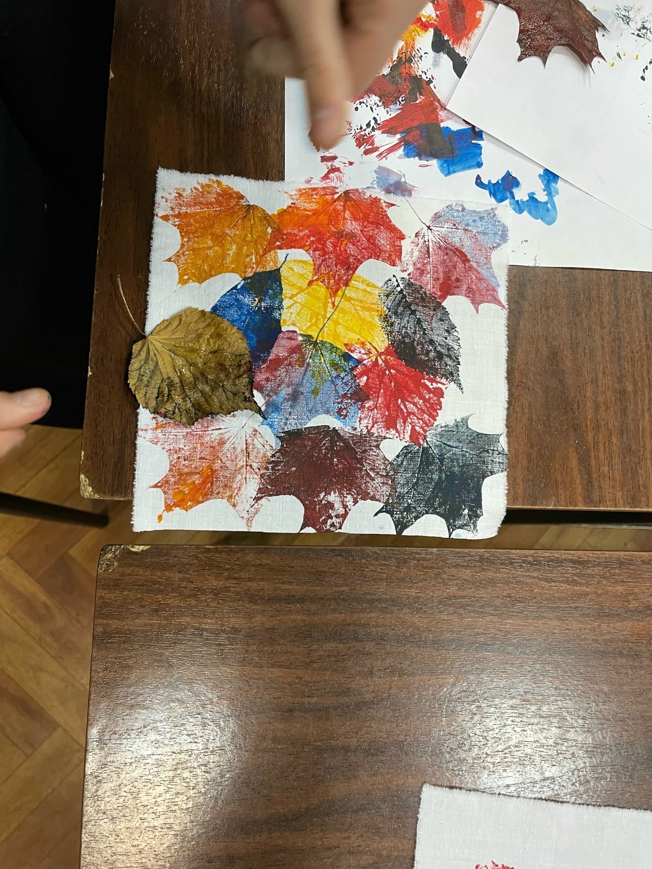 Существуют интересные технологии в «росписи по ткани». Одни требуют трудоемкой работы, а другие просты и оригинальны в исполнении. Самый простой способ декорирования тканей, это роспись акриловыми красками. Если нет специальных штампов для набойки, то можно использовать все, что есть под рукой. Осенью это, конечно, красивые листочки! Этот мастер-класс потребовал от ребят аккуратности, фантазии и терпения. Теперь небольшой кусочек ткани будет напоминать об ушедшей золотой осени! Таким способом можно украсить любую обычную вещь и превратить её в уникальную!