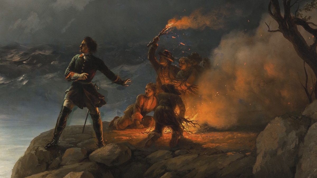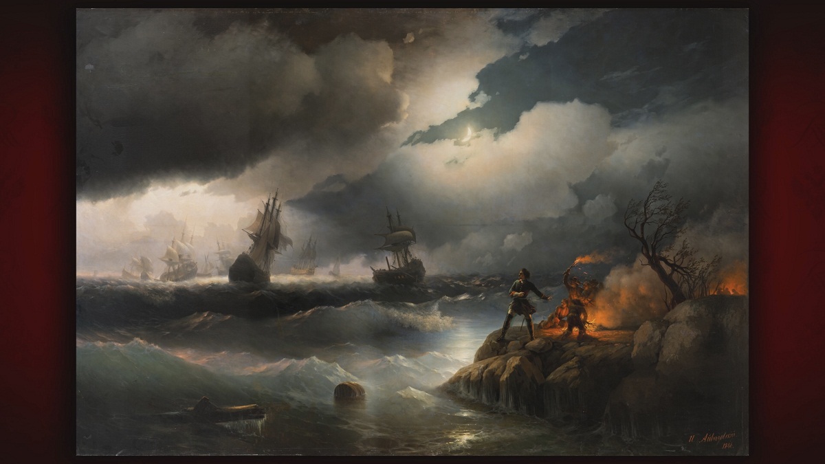 Aivazovsky Ivan. Peter I at Krasnaya Gorka Lighting a Fire on the Shore to Signal to his Sinking Ships