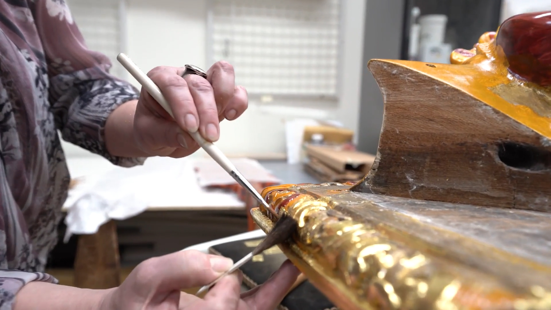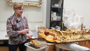 В мастерской реставрации золоченой резьбы проходят реставрацию художественные произведения народного и прикладного искусства XVIII-XX веков, имеющие деревянную основу с позолотой и (или) росписью. Подобные экспонаты довольно часто поступают в музей в аварийном состоянии. Деструкция грунта, трудноудалимые поверхностные загрязнения, поздние поновления, утраты резного декора и другие проблемы требуют реставрационного вмешательства.