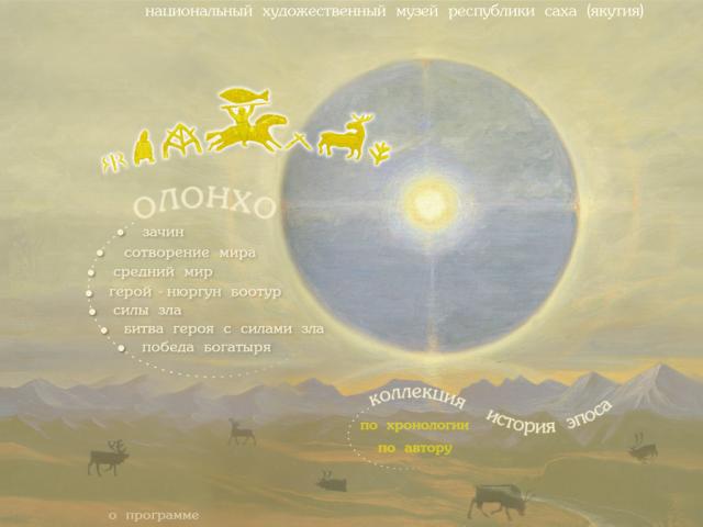Программа включает произведения живописи, графики, скульптуры и декоративно-прикладного искусства художников Якутии, посвященные эпосу «ОЛОНХО».