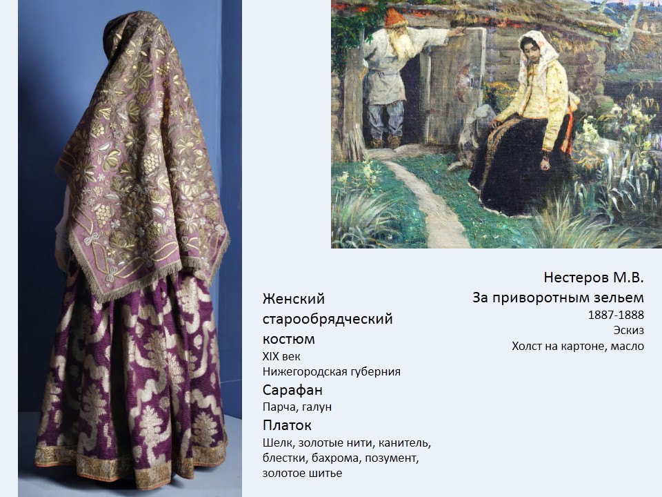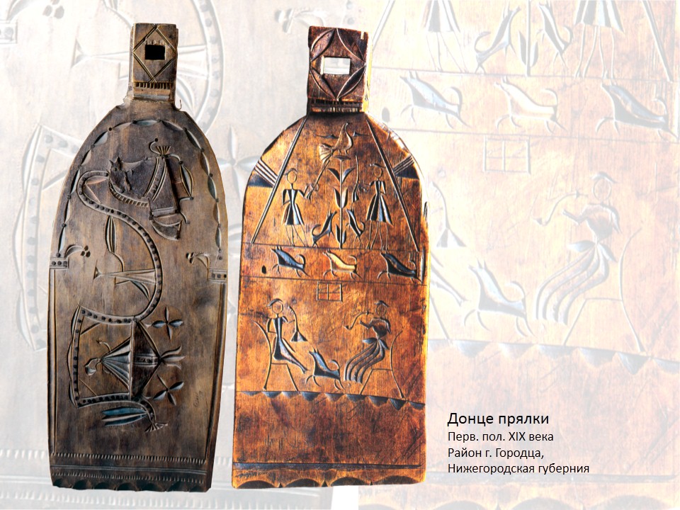 Нижегородская земля издавна славилась первоклассными изделиями мастеров народных художественных промыслов. Это и искусная резьба по дереву, украшавшая крестьянские дома и купеческие особняки – нарядные украшения фронтонов и оконные наличники, и яркая городецкая роспись прялок, и детская игрушка, и праздничный женский костюм – сарафаны, душегреи, головные уборы, изящная обувь. Многие из этих замечательных созданий хранятся не только в коллекциях Историко-архитектурного музея-заповедника и Нижегородского государственного художественного музея, основанного еще в 1894 году, но и в коллекции Государственного Русского музея в Петербурге, который является его ровесником (учрежден в 1895 году).