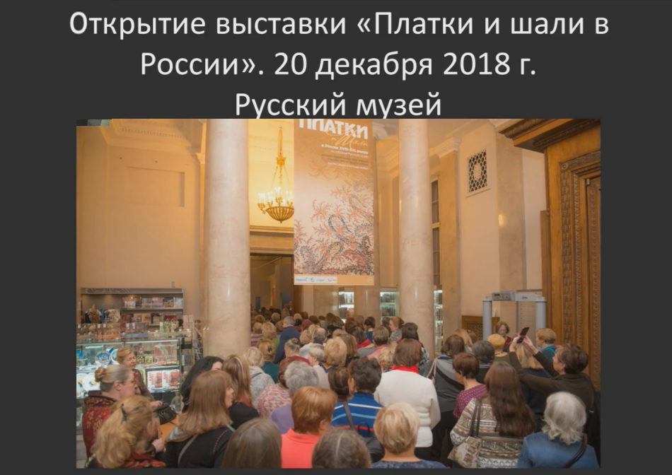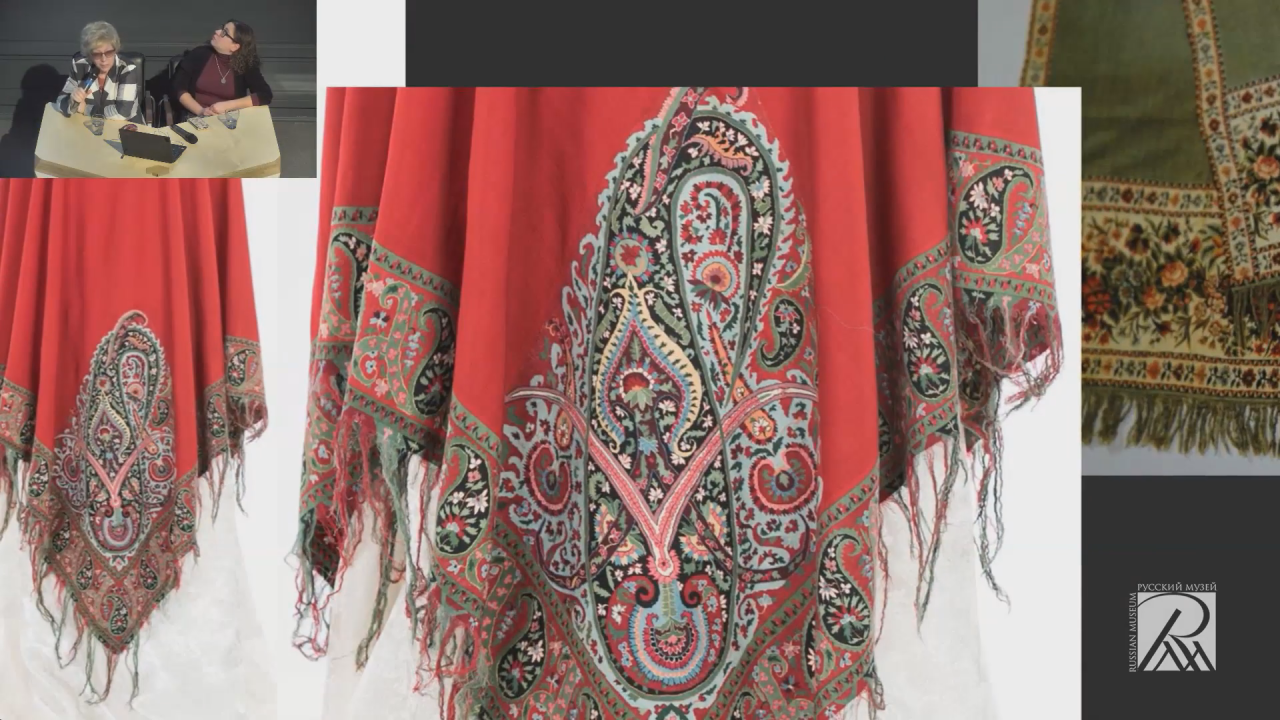 Авторы лекции - Ковалева Наталия Ивановна и Сорокина Марина Александровна - рассказывают о том, как зародилось и развивалось производство платков и шалей в России, как и почему изменялись их размер и форма, какими уникальными техническими и художественными приемами владели российские мастера.