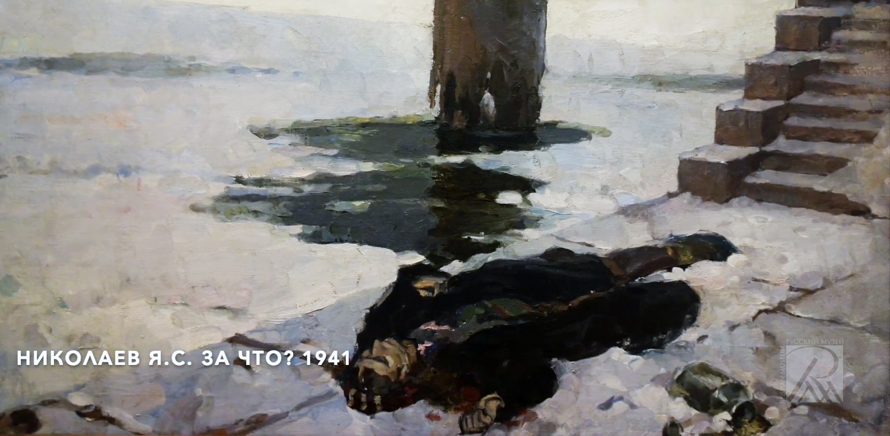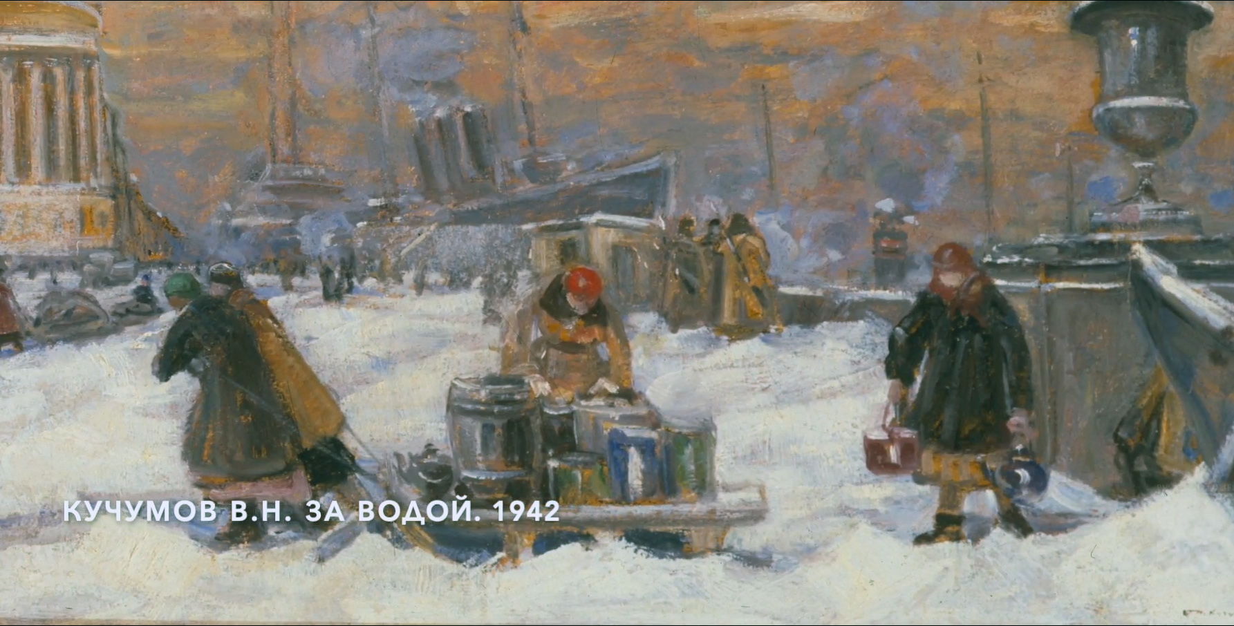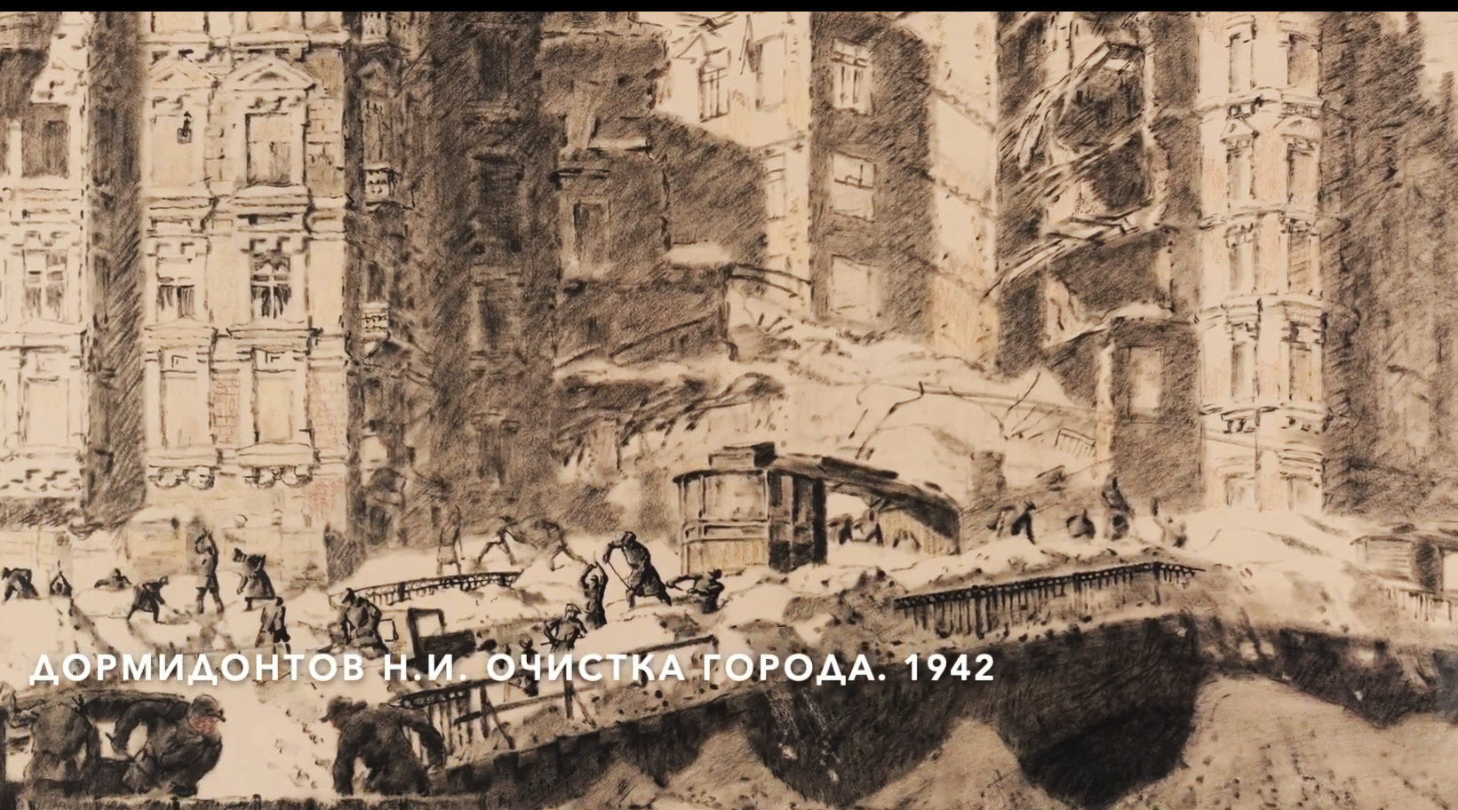Большая заслуга музея заключается в том, что все эти произведения были сохранены. В фильме показаны некоторые из этих произведений: В.А Раевская-Рутковская «Эвакуация» (1942), В.Н. Кучумов «За водой» (1942), Н.И. Дормидонтов «Очистка города» (1942), А.Н. Савинов «Хранилище в Молотовской галерее» (1942) и др.