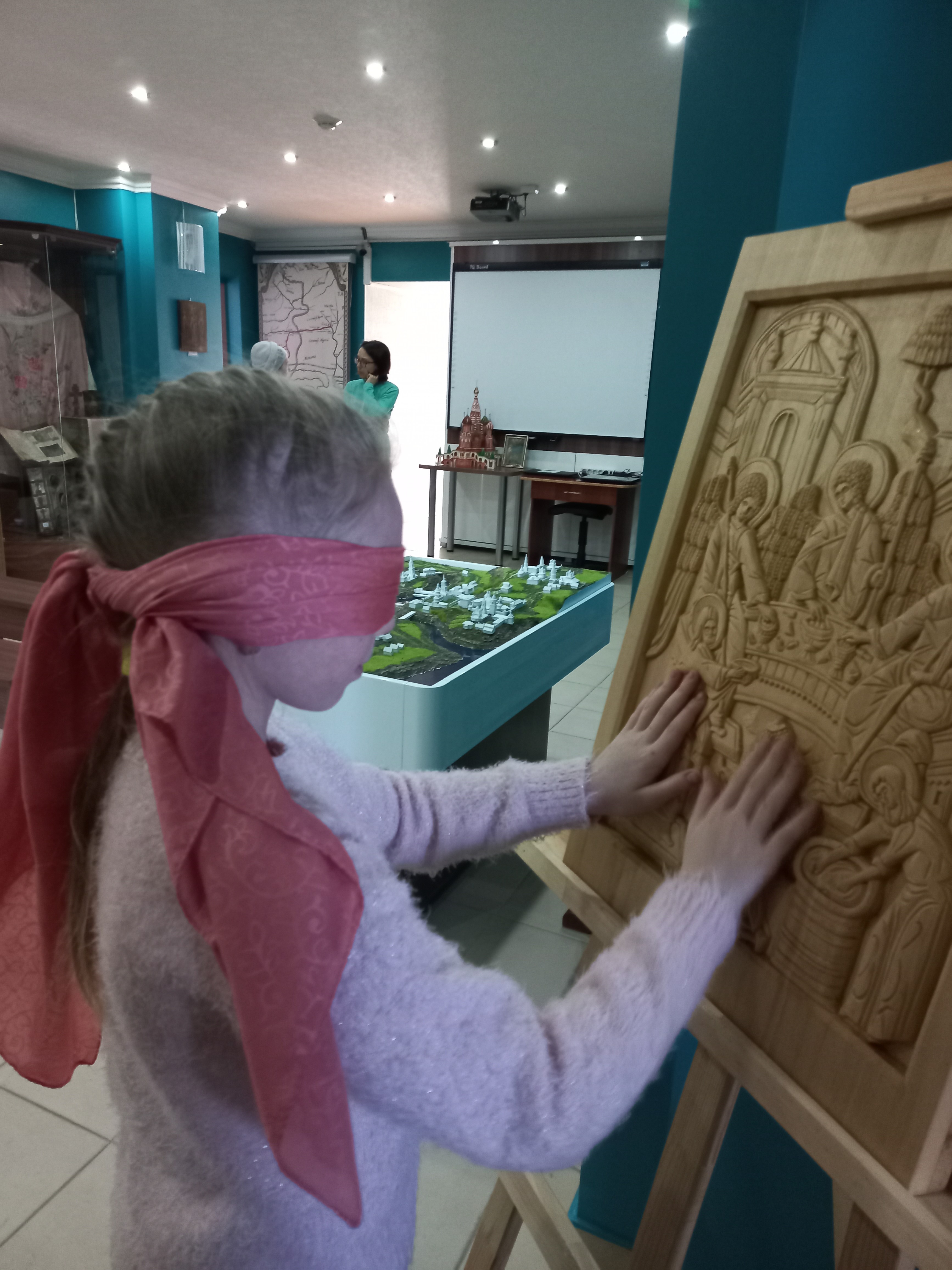 - 27.11.2019 Волонтеры-экскурсоводы работают с незрячими и слабовидящими детьми по тактильному макету