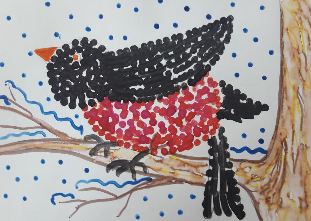 И певчих птичек: скворец, жаворонок, чиж, щегол, зяблик, пеночка, красивый с хохолком свиристель[1] (педагог /ребенок крепит на веточку дерева (красный ствол) птицу (1 шт.).