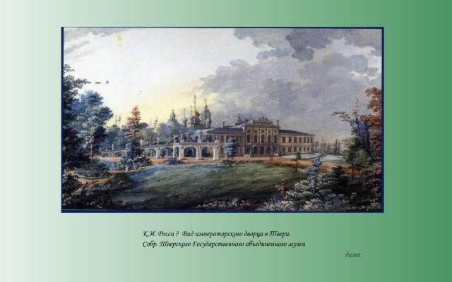- раскрытие своеобразия художественного стиля зодчих К.И. России и Н.А. Львова, уникальности и ценности архитектурных памятников в истории тверского градостроительства;