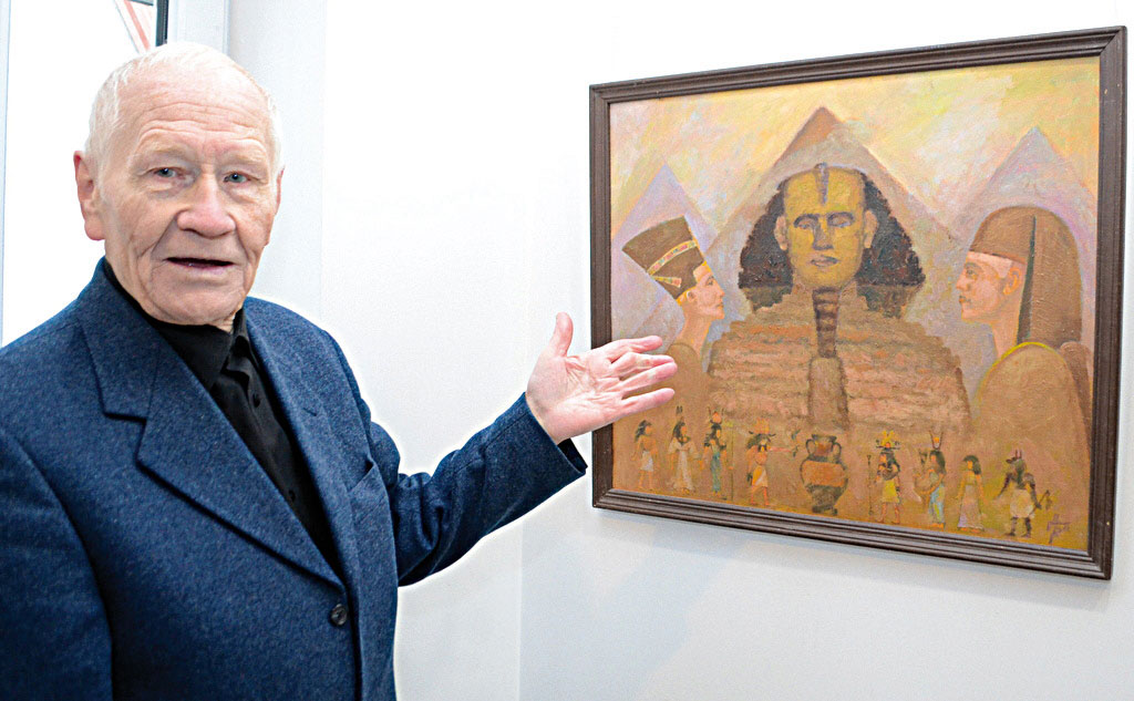 месяц экспонировалась в Белом зале. И в последний день выставки, на фоне разножанровых работ и прошла творческая встреча с Альбертом Беляковым. На нее пришли художники Кохтла-Ярве, а также жители города – поклонники изобразительного искусства.Арабская пословица гласит: «Всё на свете боится времени, а время боится пирамид».Она как нельзя лучше подходит для названия одной работы Белякова. А еще, показалось, что вре-