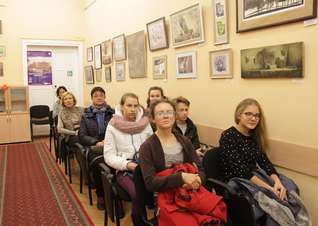 «Живые» уроки изобразительного искусства, отечественной истории и культуры в ИОЦ «Русский музей: виртуальный филиал» традиционно завершаются беседой на действующей экспозиции. Зимой здесь работает выставка «Окрыление», на которой представлено более 40 авторов-современников (Севастополь, Симферополь, Донецк, Архангельск, Москва, Санкт-Петербург), более 100 произведений книжной графики, в том числе цифровой иллюстрации, тематической живописи, скетчинга, художественной, репортажной и экспериментальной фотографии, дизайна, а также авторские книги. От виртуального к реальному.