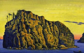В 1843 году было открыто пароходное сообщение с Валаамским монастырем. Эти обстоятельства и характер изображённого пейзажного мотива позволили искусствоведу и научному сотруднику Третьяковской галереи Светлане Степановой предположить, что художник изобразил одно из святых мест севера России. Предложенная версия нашла подтверждение появлением на выставке в Государственном Русском музее в 2019 году аналогичного по мотиву пейзажа — «Вид Валаамских островов. Рассвет», попавшего в собрание Ново-Валаамского монастыря (Финляндия).