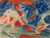 В 1908–1917 годах в графическом творчестве Петрова-Водкина преобладали этюды и эскизы, теснейшим образом связанные с картинами и монументальными росписями, созданными в это же время. Замыслы всех главных композиций (с ними он выступал на выставках Парижа, Петербурга и Москвы), составивших славу художника, сначала возникали и находили свое решение в многочисленных листах. «Берег» (1908), «Сон» (1910), «Греческое панно» (1910, местонахождение неизвестно), «Мальчики» («Играющие мальчики», 1911), «Купание красного коня» (1912), «Мать» (1913, ГТГ), «Девушки на Волге» (1915), «На линии огня» (1916) — эти названия встречаются в рисунках и набросках, принадлежащих многим музейным и частным собраниям. Они подтверждают, что в работе над композициями художник уходил от порой случайного реального впечатления и настойчиво добивался ощущения большой формы через пластическую ясность и отрицание мелочной бытовой дробности. Качество, которое когда-то Валентин Серов, любимый педагог Петрова-Водкина, назвал «парадностью», было очевидно присуще природе дарования художника, отвечало его миропониманию и корректировало задачи, поставленные им в искусстве. Наталья Козырева. О рисунках Петрова-Водкина // Кузьма Сергеевич Петров-Водкин. СПб. 2018. С. 19.