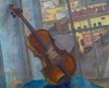 Скрипка на фоне урбанистического пейзажа. Изящной форме инструмента противопоставлена жесткая геометрия оконных переплетов; теплому дереву – холодное стекло, маленькому пространству комнаты, человеческому приюту – громады каменных зданий безликого города. Мотив извечного конфликта духовного и технического начал приобретает в этом натюрморте философское звучание.