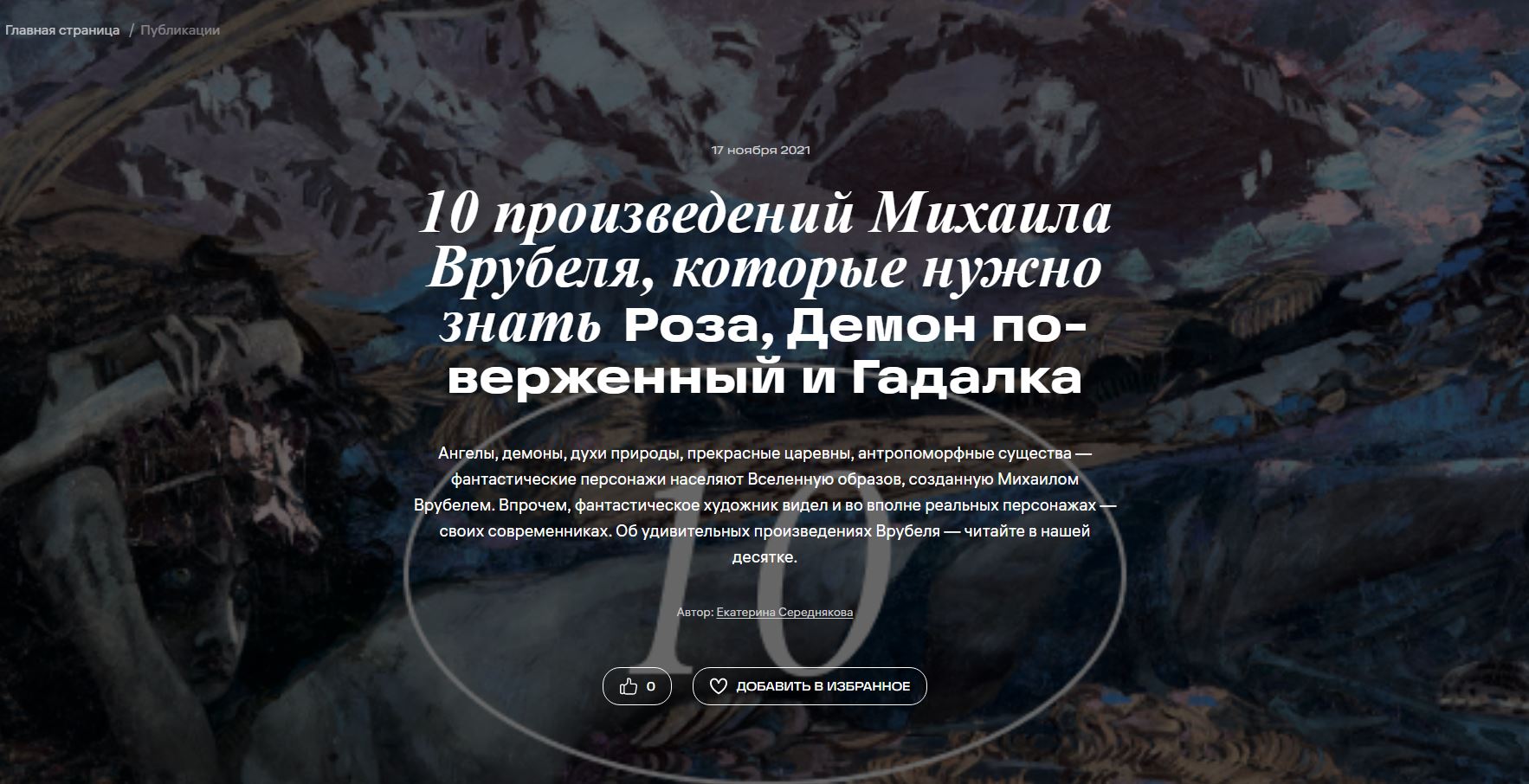 Екатерина Середнякова. 10 про­из­ве­де­ний Михаила Врубеля, которые нужно знать Роза, Демон по­вер­жен­ный и Гадалка (17 ноября 2021)