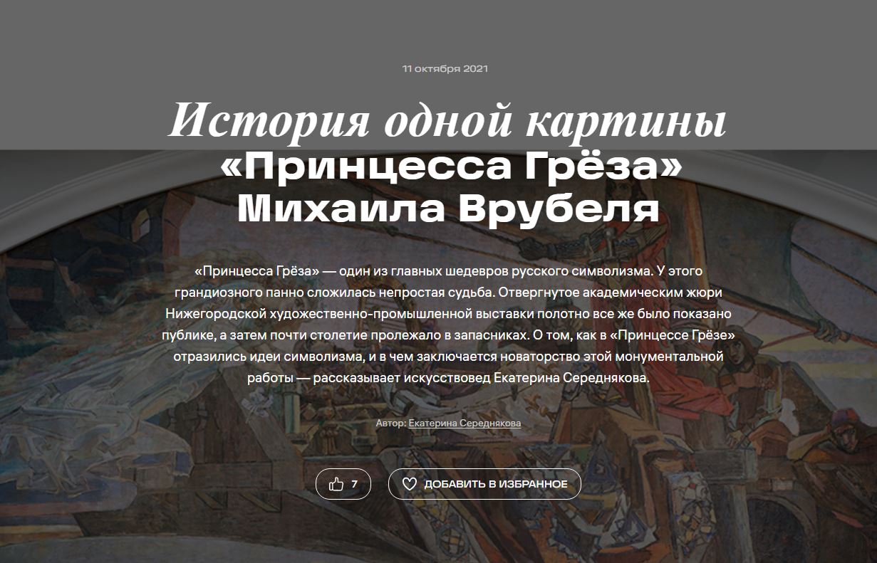 История одной картины «Принцесса Грёза» Михаила Врубеля. (11 октября 2021)