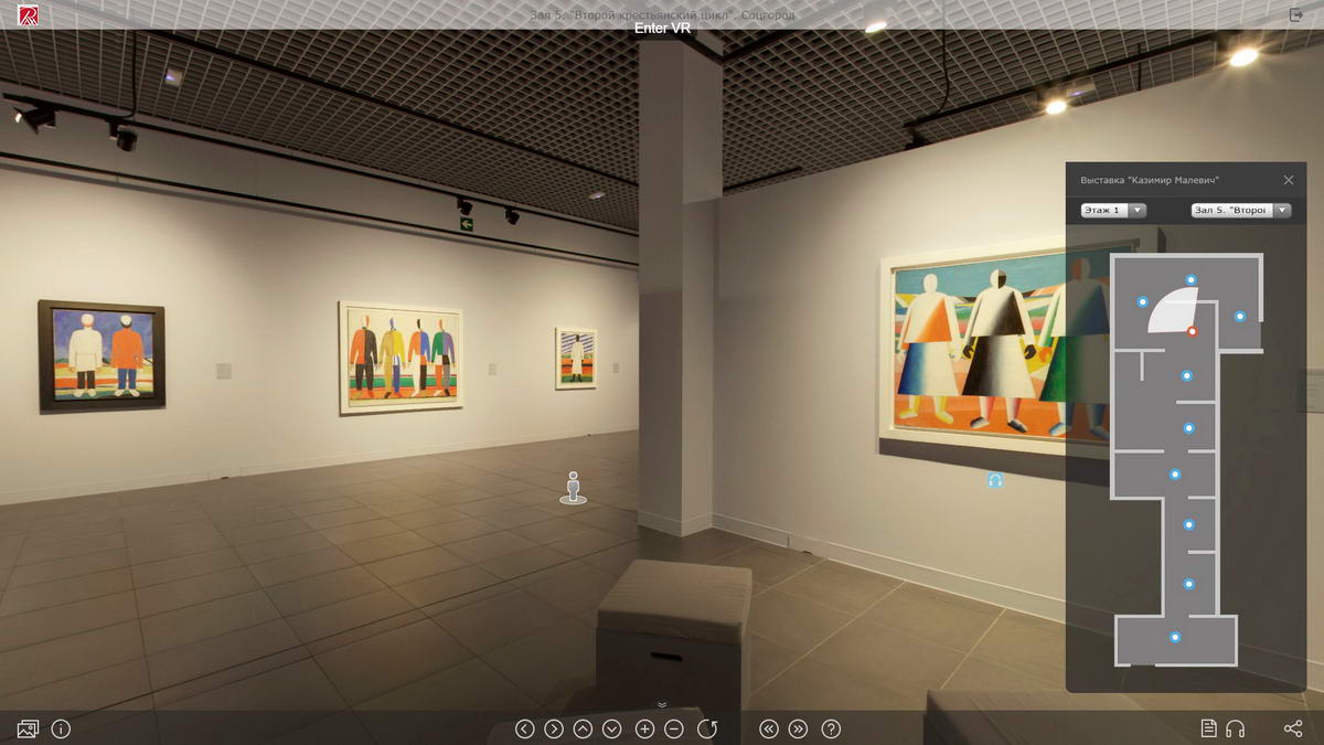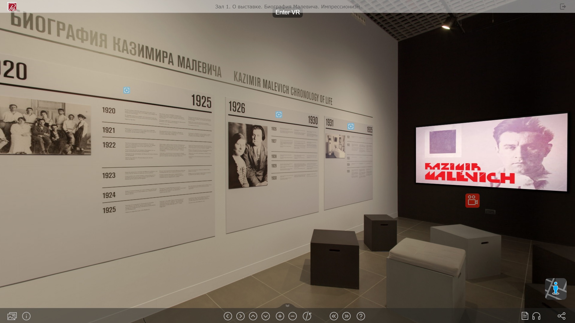 Выставка проходила с 15 сентября 2018 по 3 февраля 2019 г. в филиале Государственного Русского музея в Малаге (Испания) и уникальна тем, что представляет  многообразие граней таланта Казимира Малевича на протяжении всей его творческой биографии. Виртуальный тур, созданный на трех языках, позволяет совершить путешествие по всем залам выставки, получить информацию о каждом объекте и рассмотреть в деталях как шедевры мастера, так и редко демонстрирующиеся произведения. А аудиогиды на русском, испанском и английском языках дают возможность глубже познакомиться с наиболее интересными объектами выставки. В туре можно посмотреть видеофильмы о жизни и творчестве художника, подробный фильм об опере-мистерии «Победа над Солнцем», а также фрагмент постановки, осуществленной в 2013 году Русским музеем совместно с Московским театром драмы и музыки.