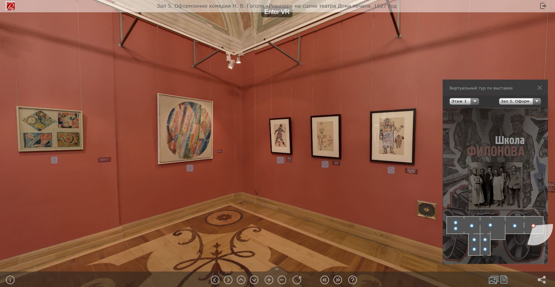 Показать полный текстВ виртуальном туре можно узнать о наиболее ярких акциях, которые были проведены этим объединением под руководством своего учителя. Отдельные залы в туре посвящены выставке «Школа Филонова» в Доме печати в 1927 году и оформлению спектакля по пьесе Н.В.Гоголя «Ревизор», который был поставлен на сцене этого учреждения весной того же года.