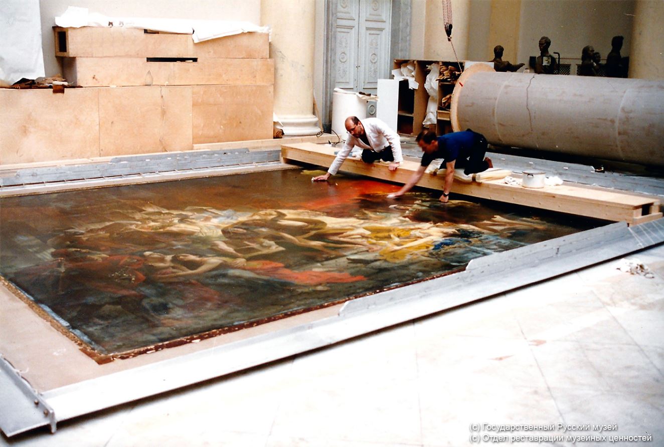 Реставрация картины «Последний день Помпеи» (1995, 2024). Публикация на сайте Службы реставрации музейных ценностей Русского музея | |
