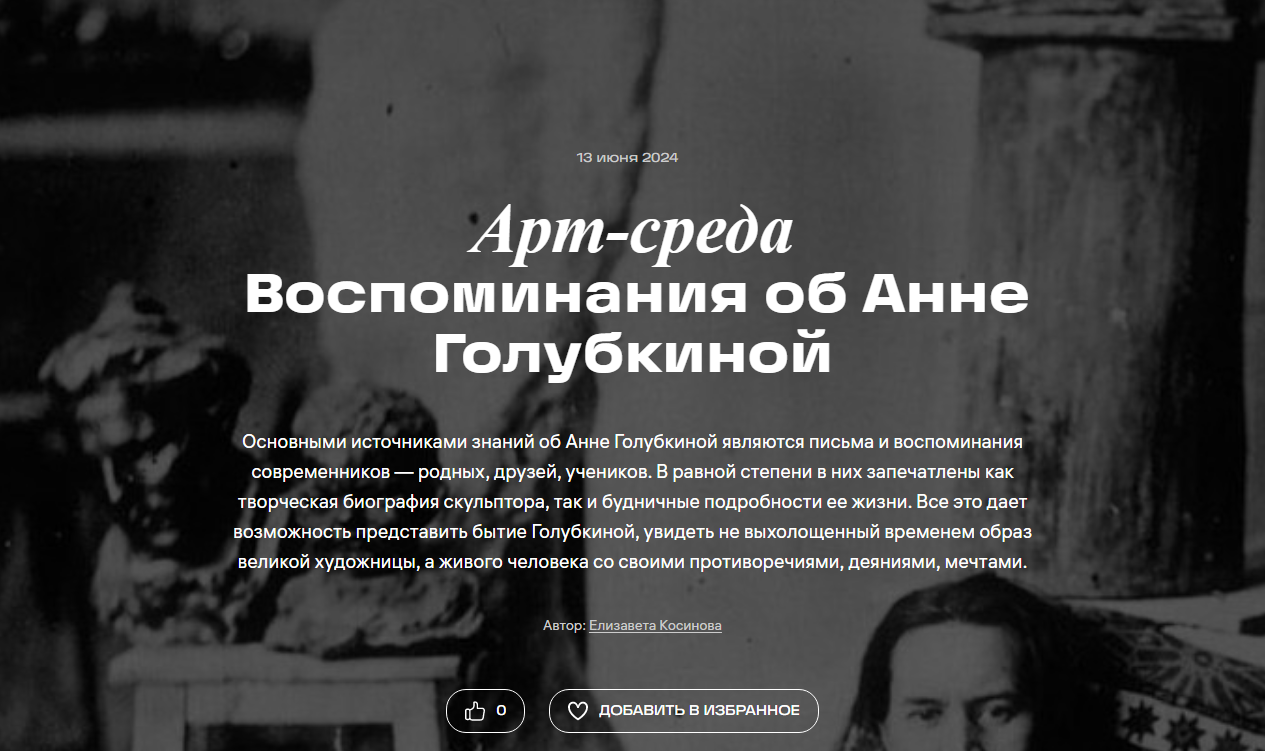 Арт-среда. Воспоминания об Анне Голубкиной |