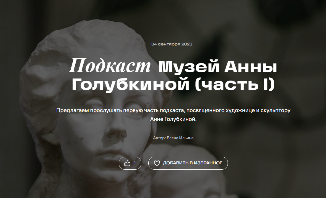 | Подкаст Музей Анны Голубкиной (часть I) портал Третьяковской галереи «Лаврус», Елена Ильина