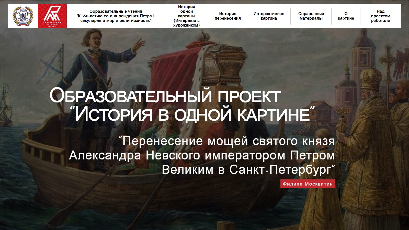 Виртуальный тур создан на основе временной выставки «Пётр I. Время и окружение», проходившей в Русском музее с 17 декабря 2015 по 3 апреля 2016 года.